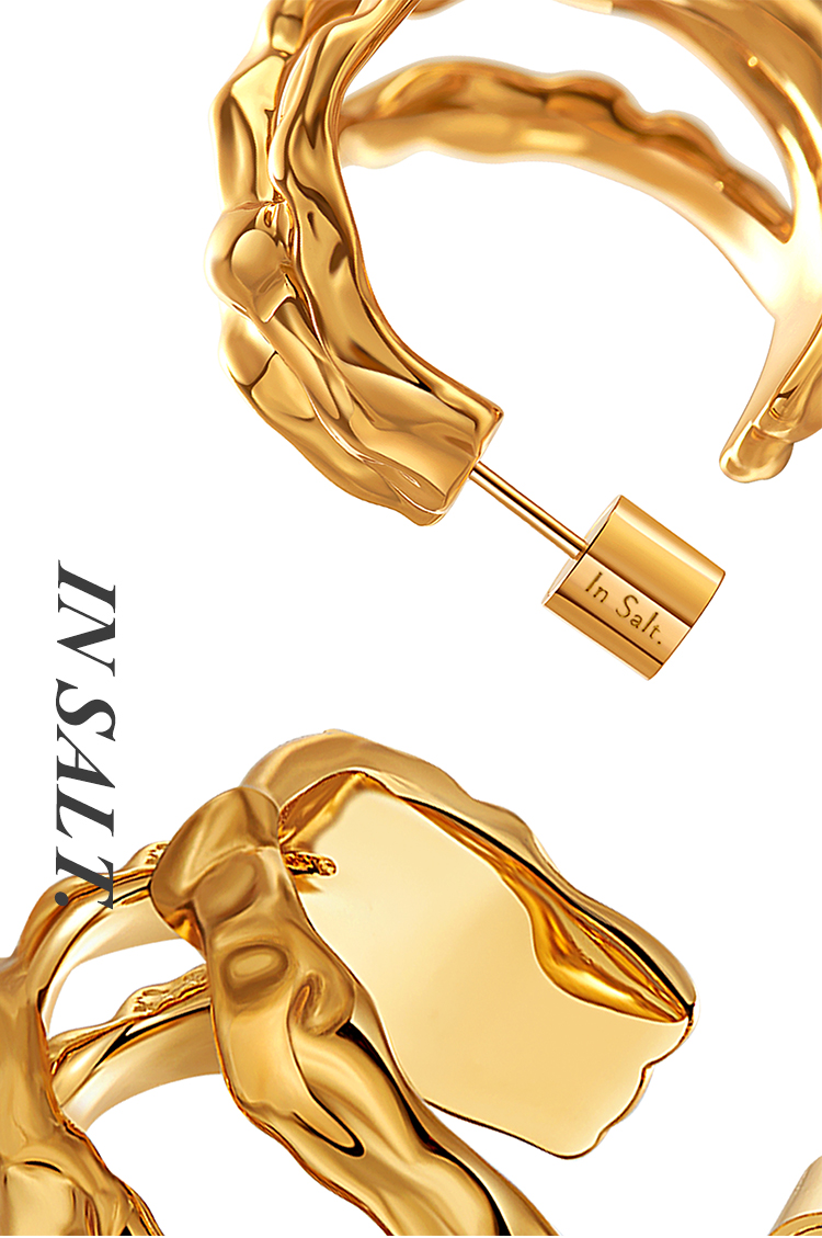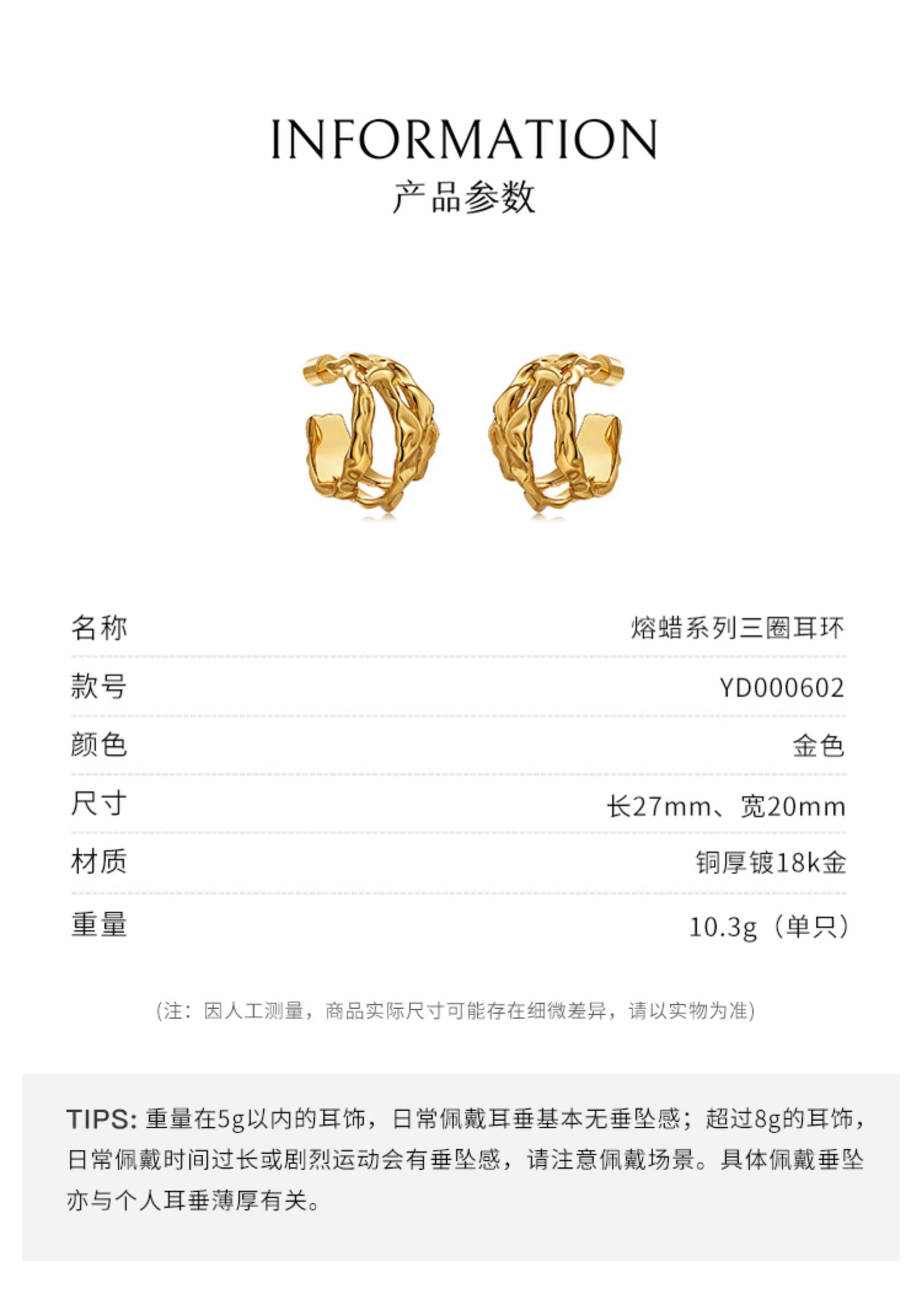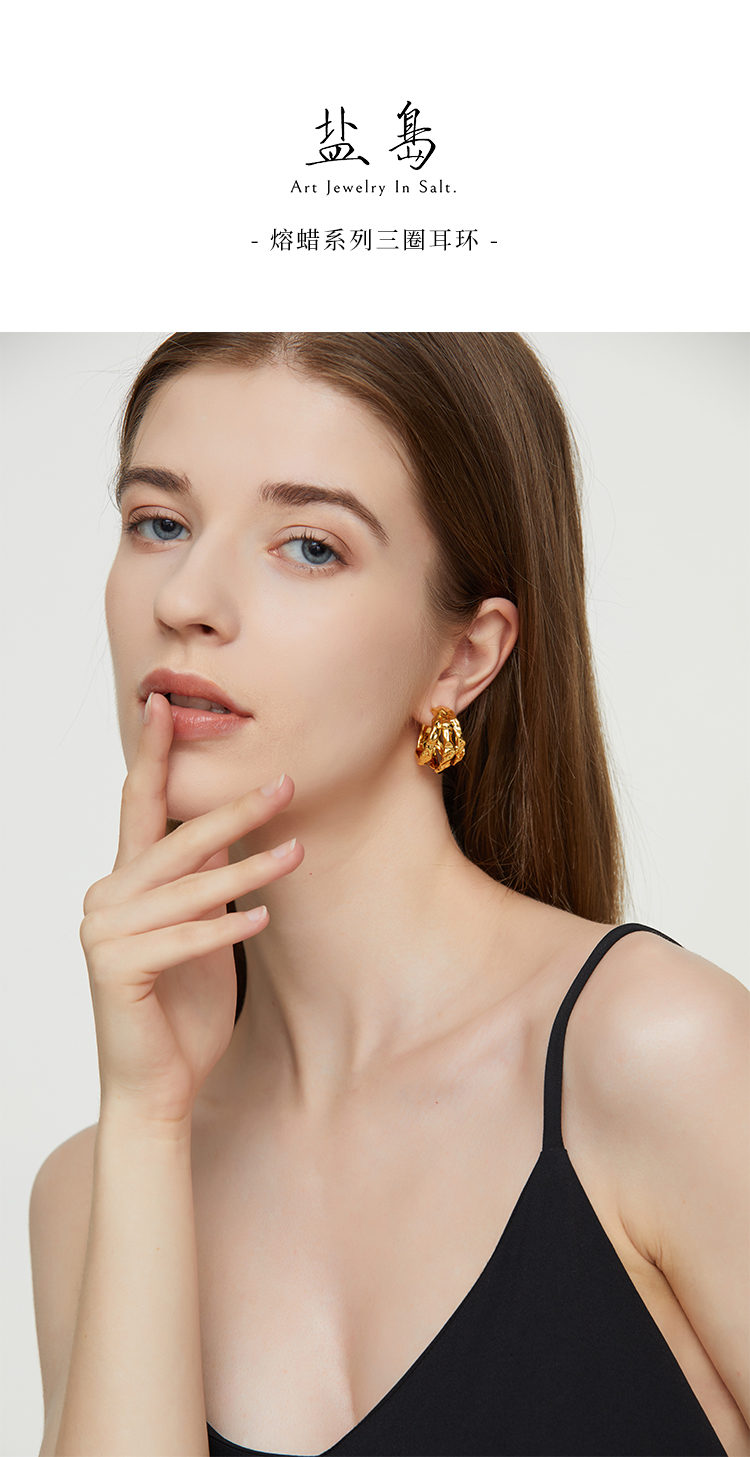 盐岛ART熔蜡三圈耳环 高级感轻奢经典复古法式风耳饰