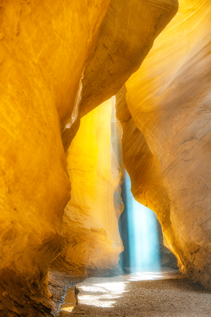 雨岔大峡谷的岩壁褶皱间,晨光撕开裂缝,泼洒流动的鎏金;波浪谷的红砂岩如凝固的浪涛,夕阳为其镀上烈焰般的铠甲 —— 双峡谷各呈奇绝,是地质肌理的极致特写。