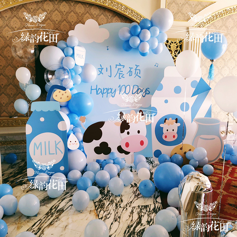 小奶牛宝宝主题小朋友儿童生日宝宝宴气球布置套餐满月百日酒布置派对气球