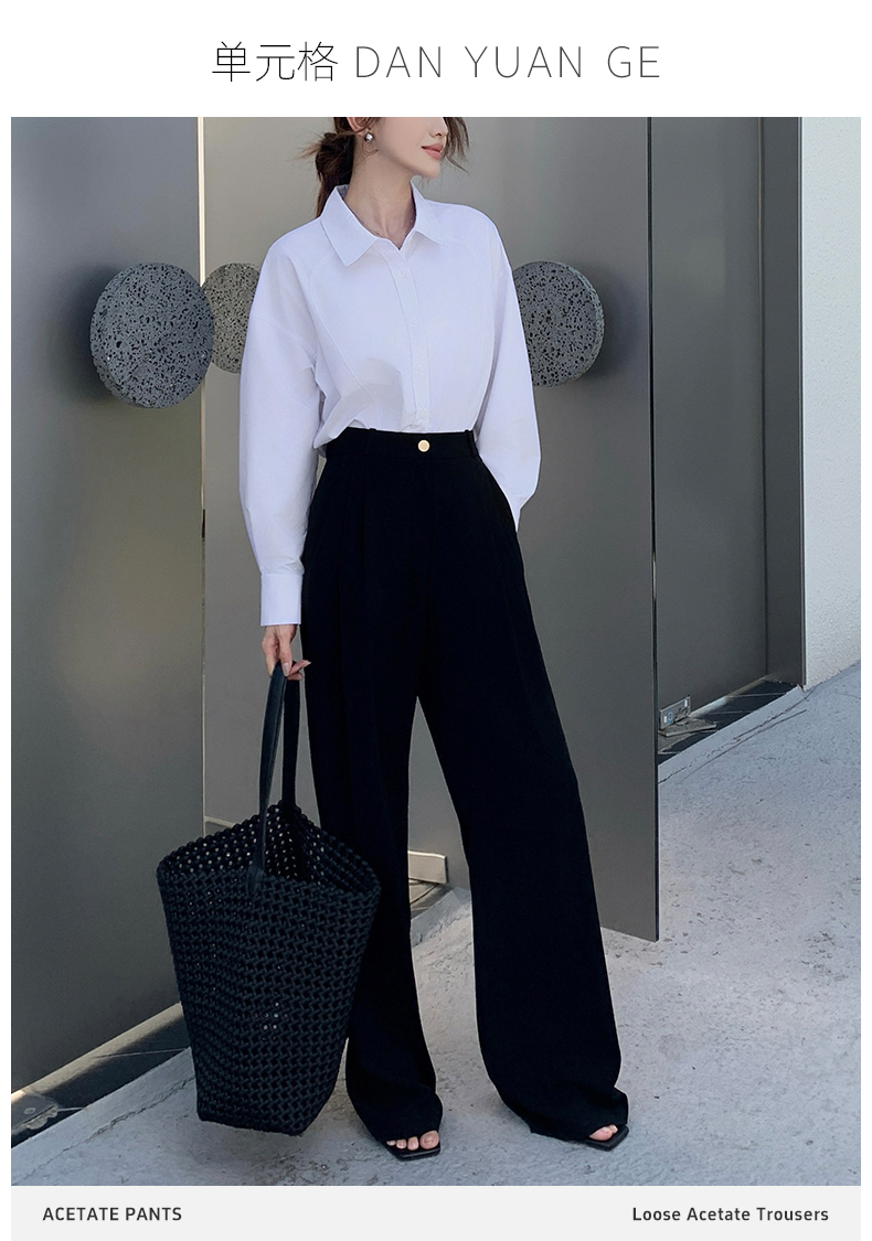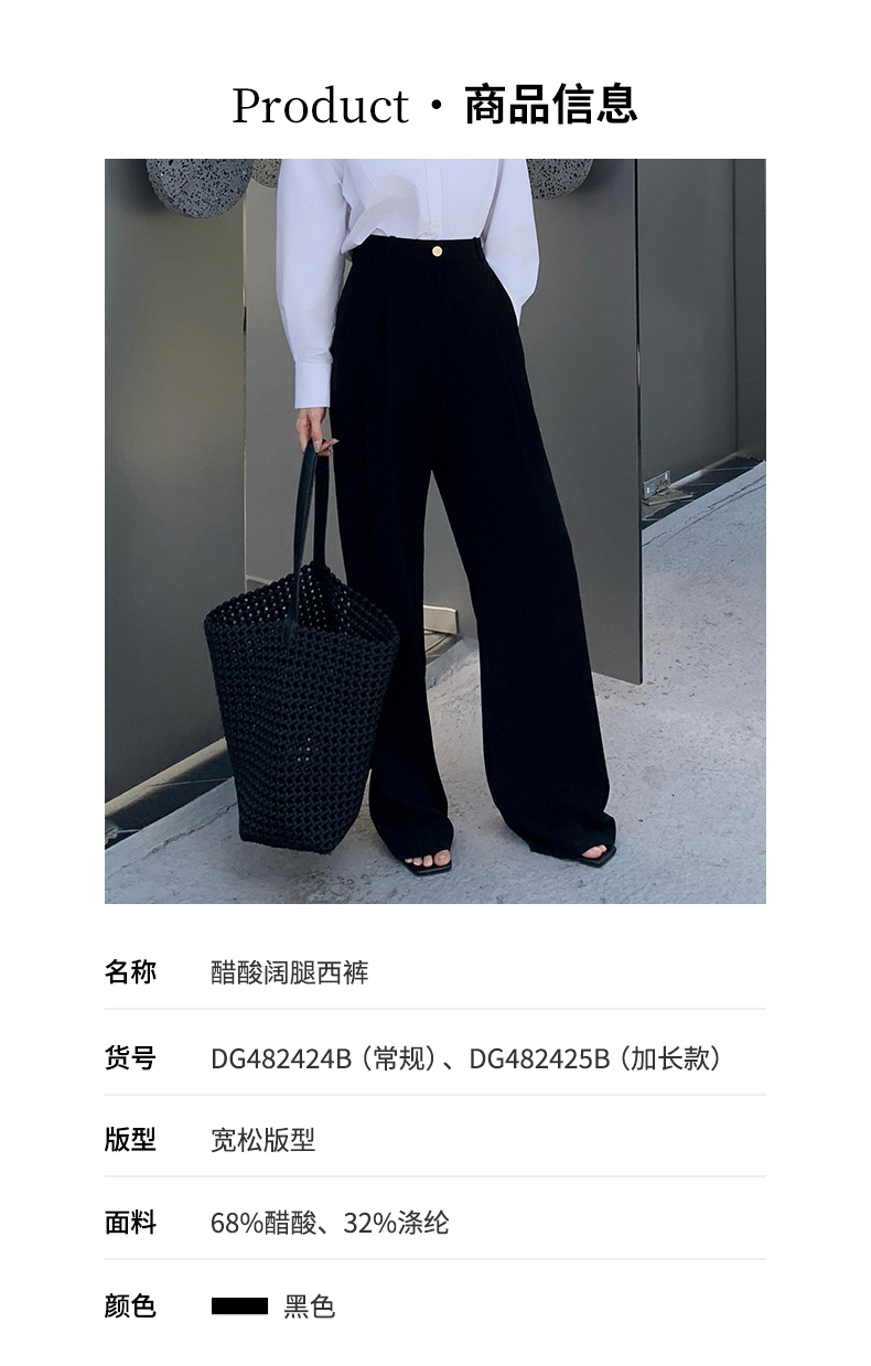 【品牌订单款】经典百搭梨型必备高腰宽松休闲醋酸阔腿西裤 DG482424B、DG482425B