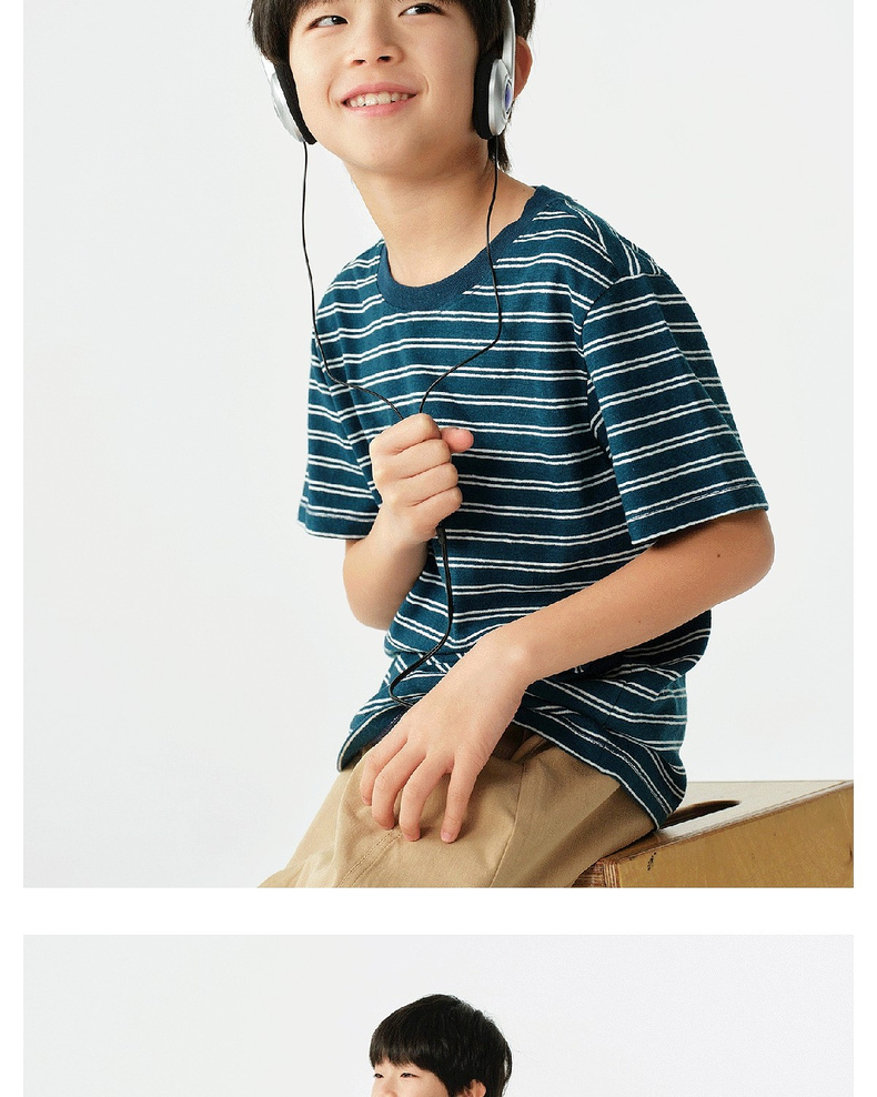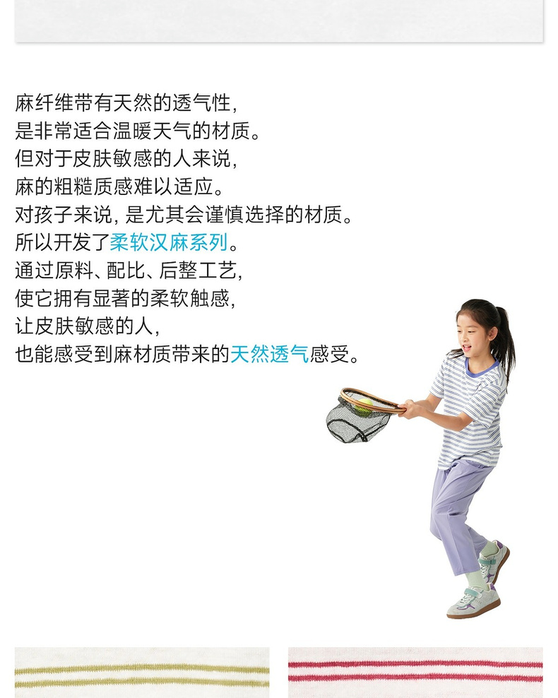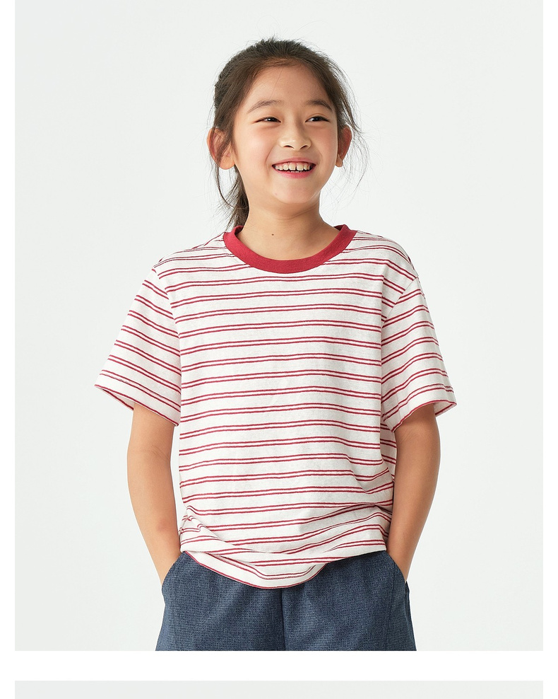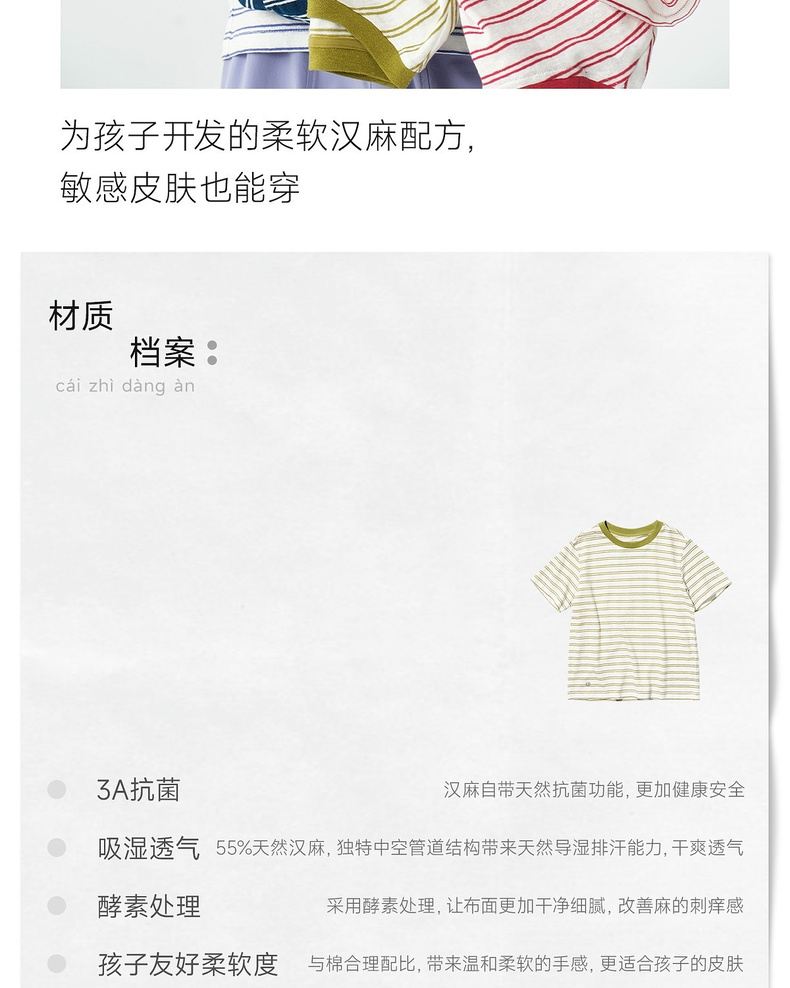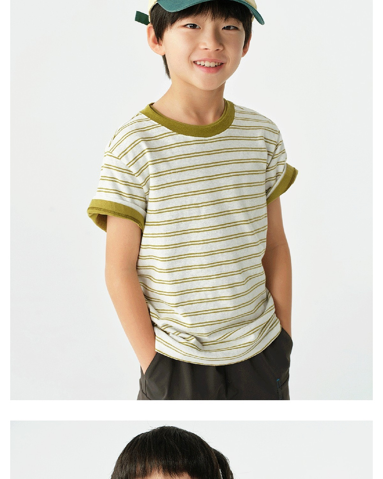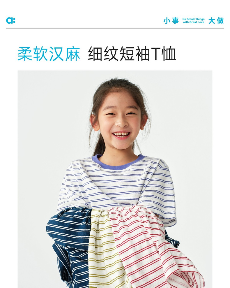 【柔软汉麻】allblu幼岚【柔软汉麻】儿童细纹短袖T恤26春夏男童女童吸湿透气
