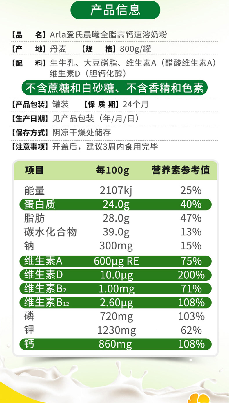 【2.18视频号】800g爱氏晨曦全脂调制乳粉 丹麦原装进口