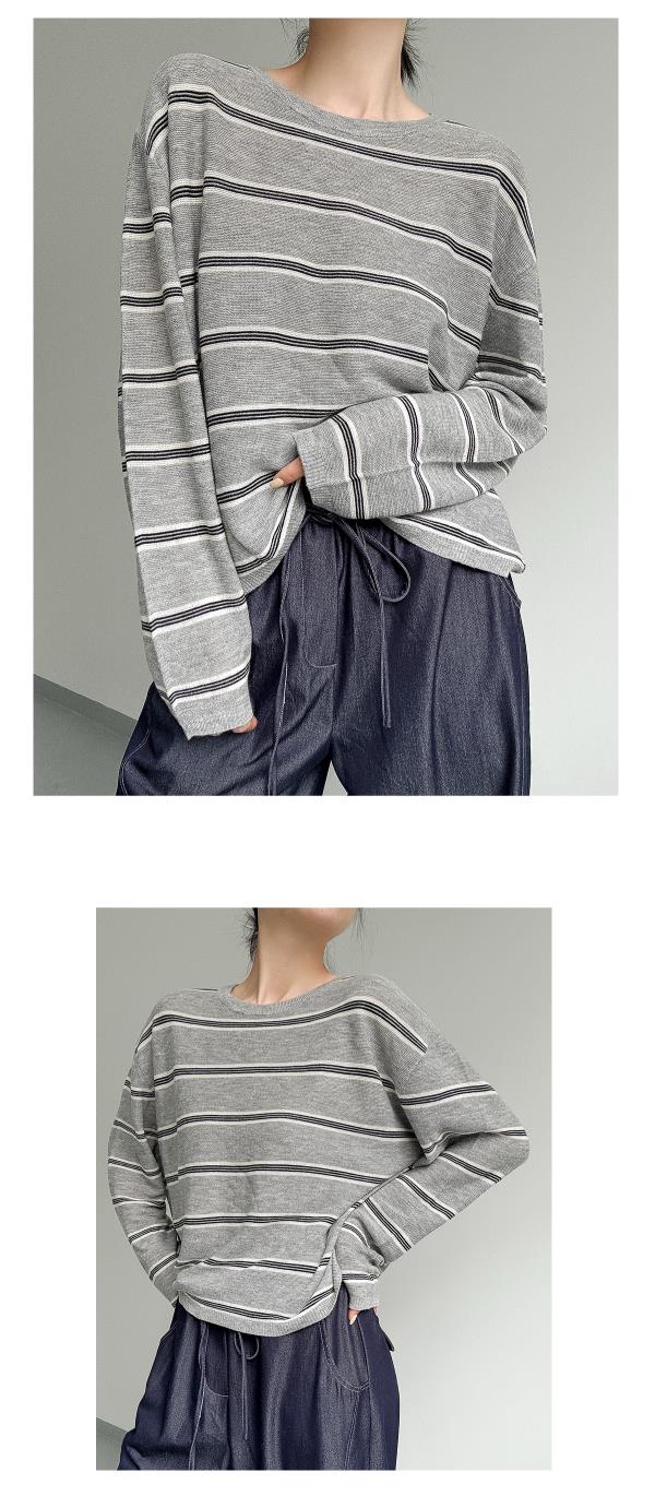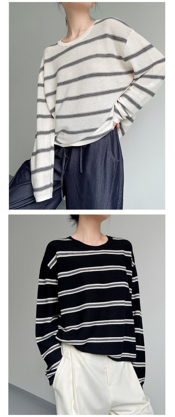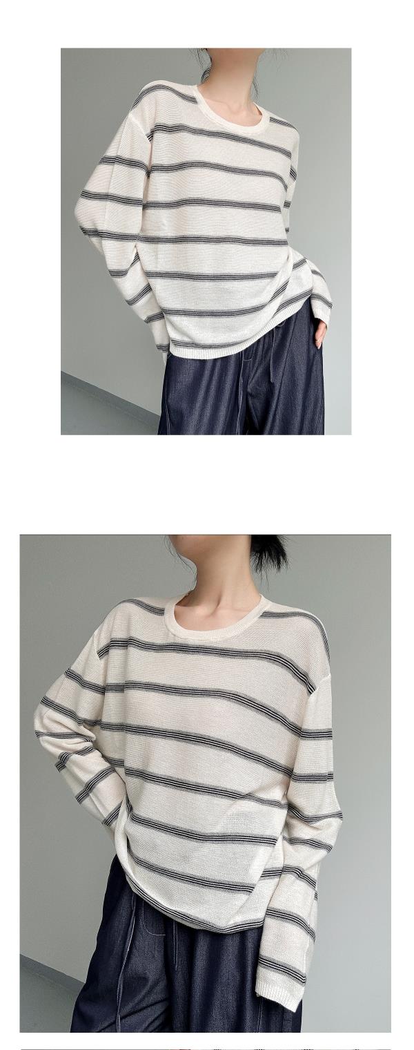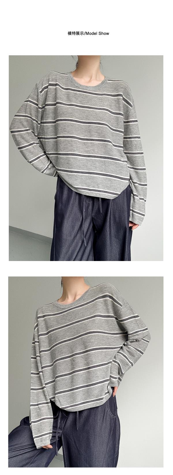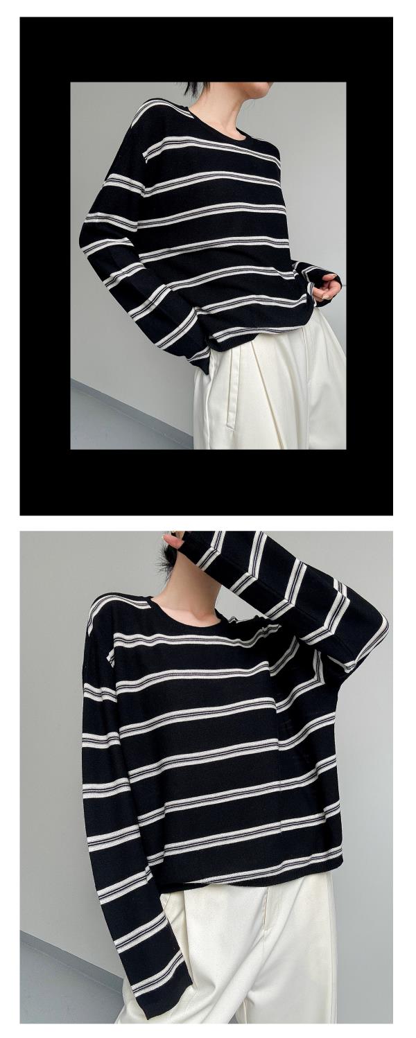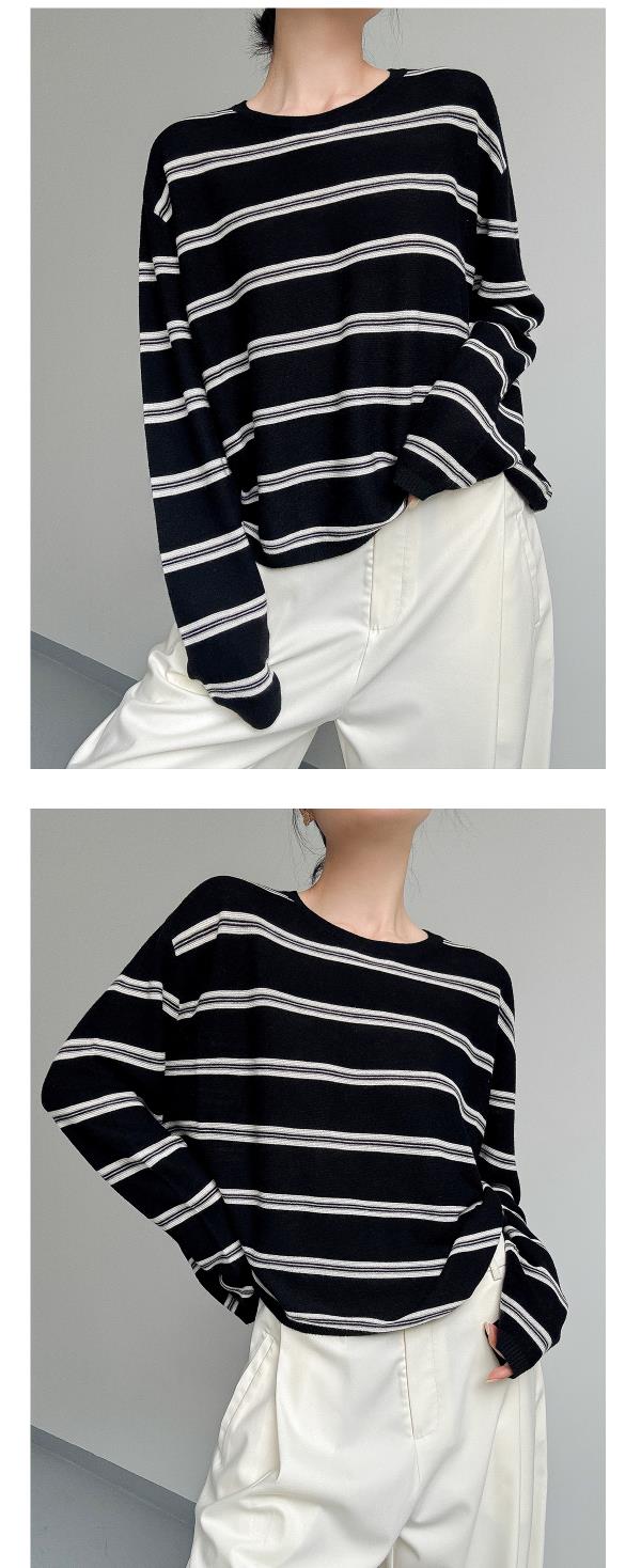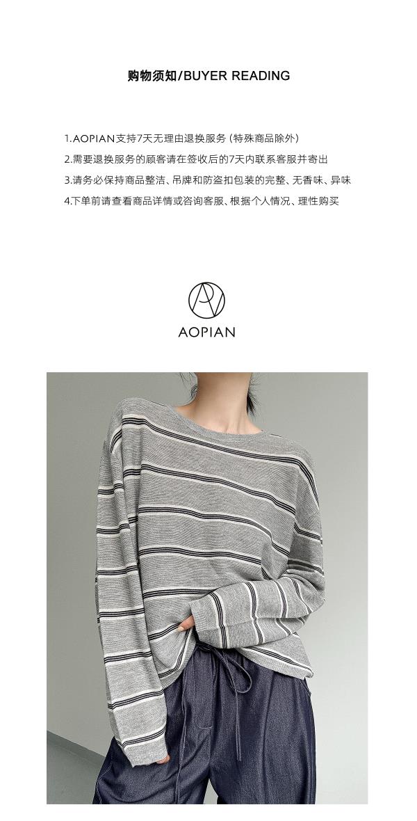 奥篇 宽松复古条纹羊毛混纺可机洗针织衫