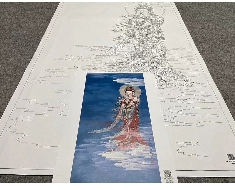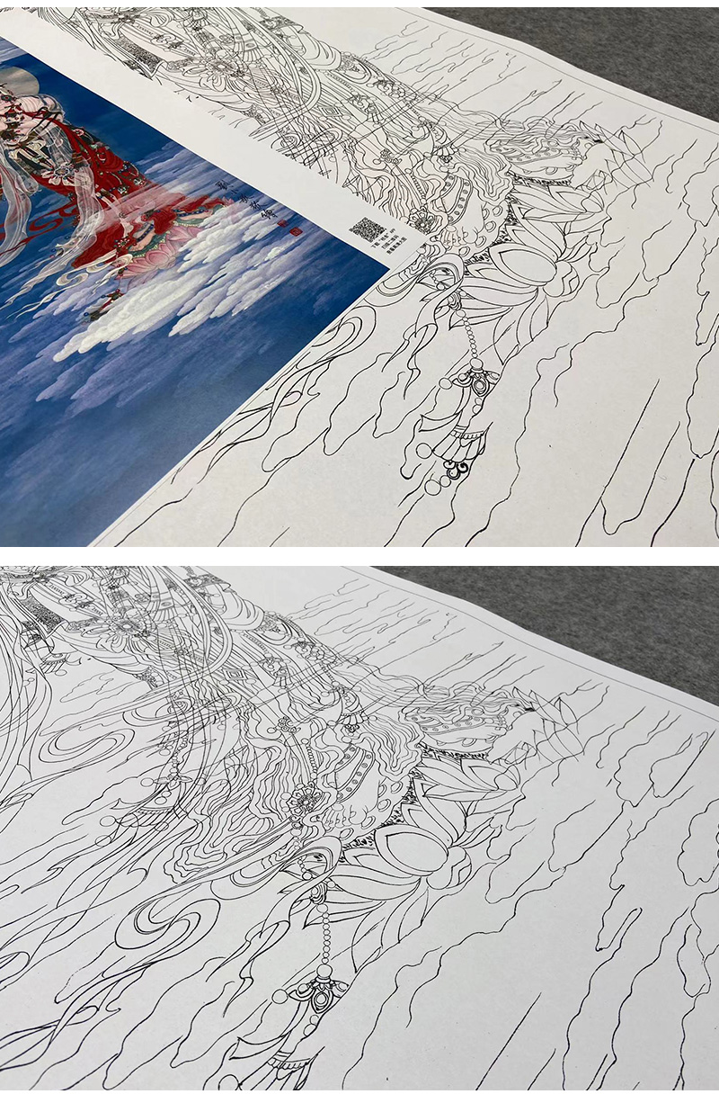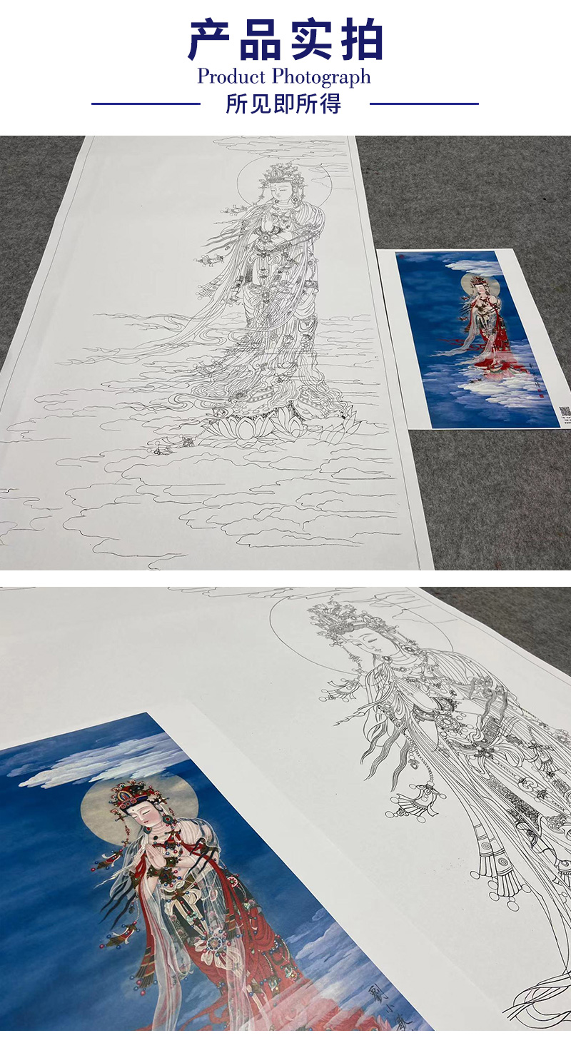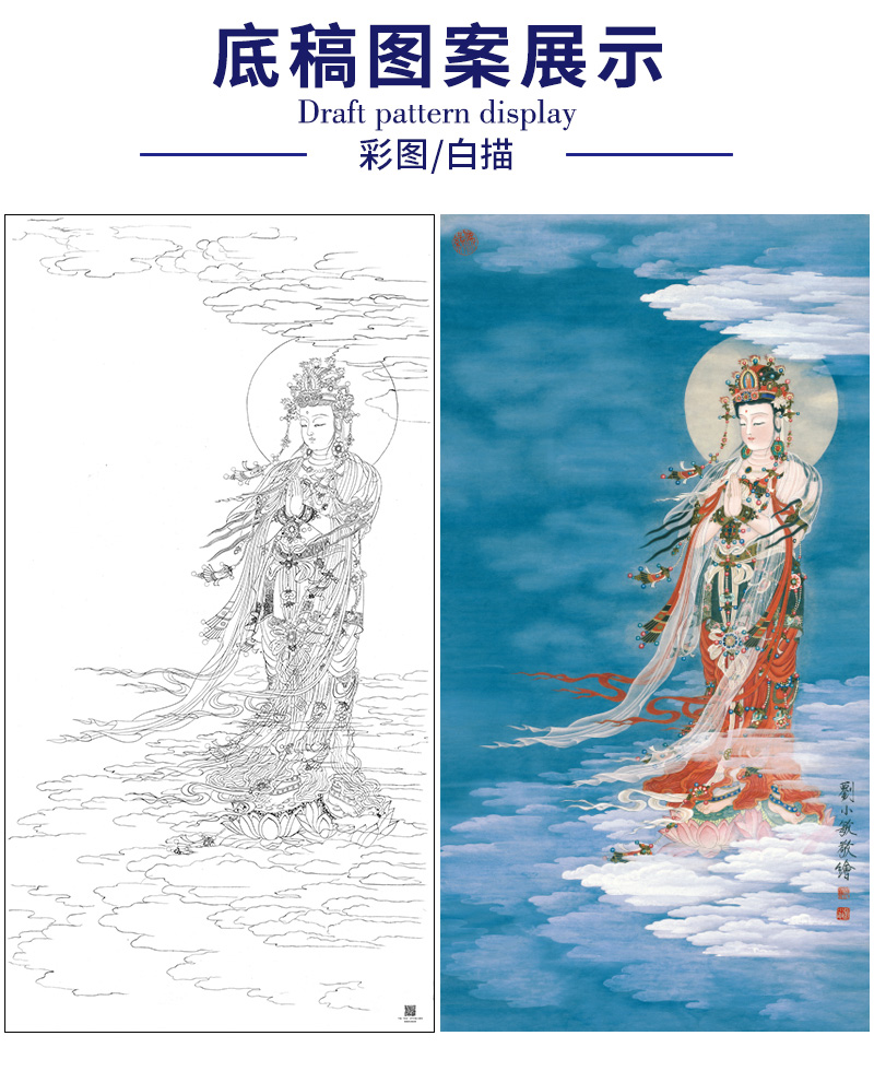 【大彩图】刘小敏工笔画白描底稿《大悲观音》临摹勾线人物线稿SF04