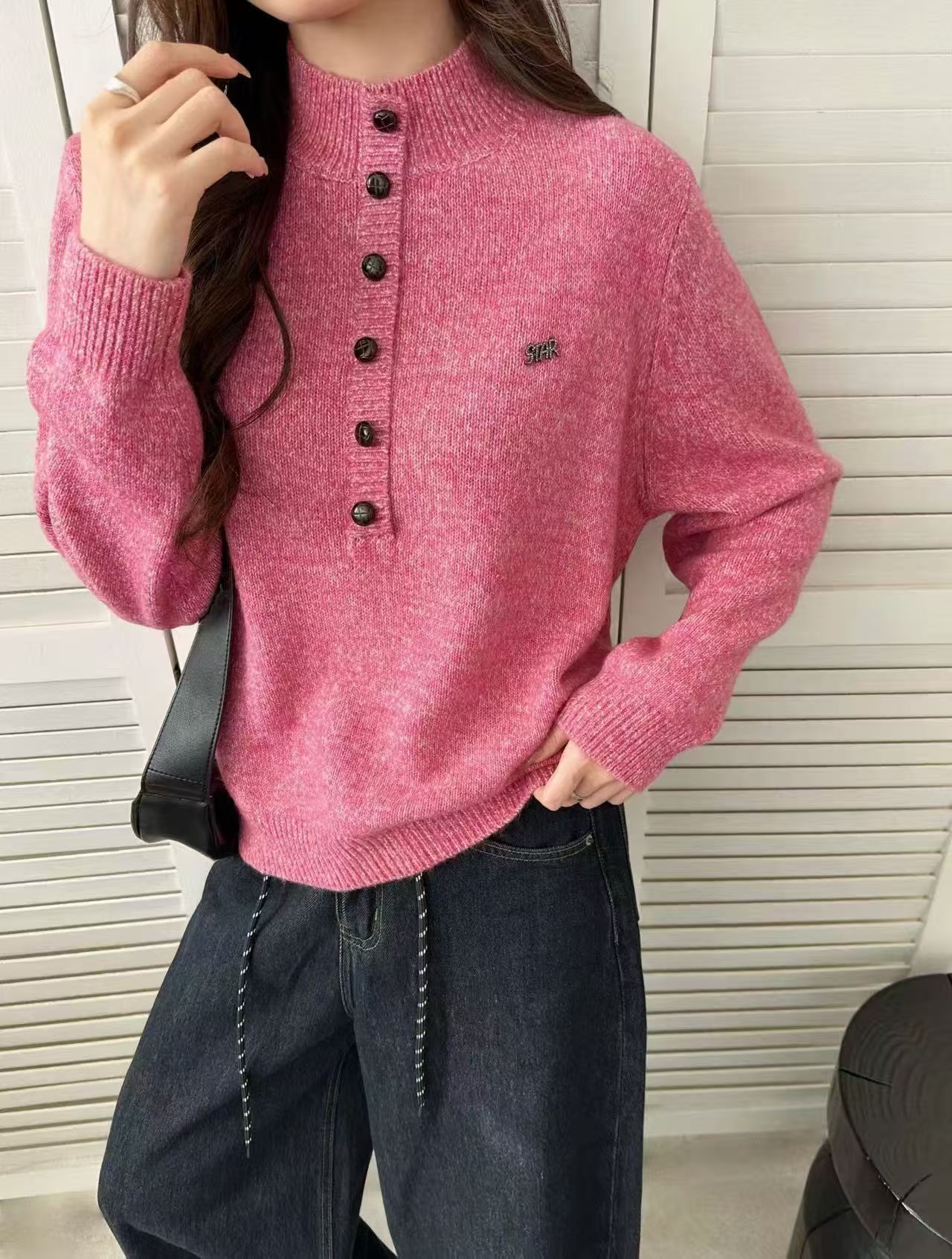 【品名】FS竹纤维女士时尚六粒扣中领针织毛衣86216