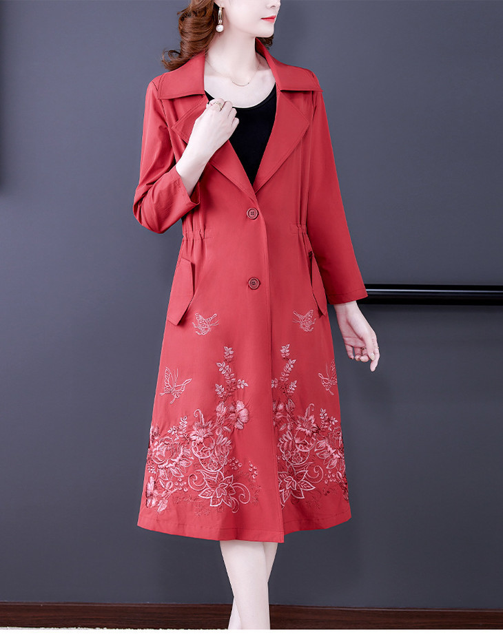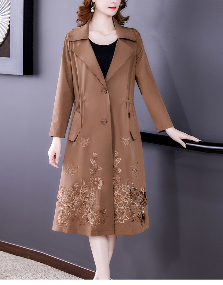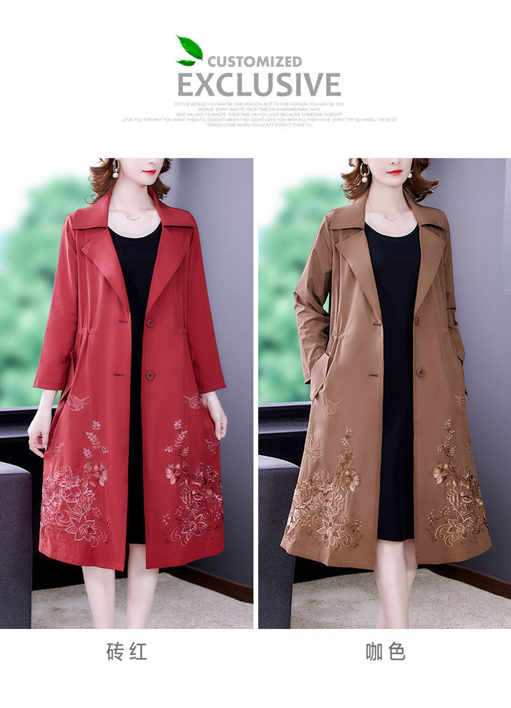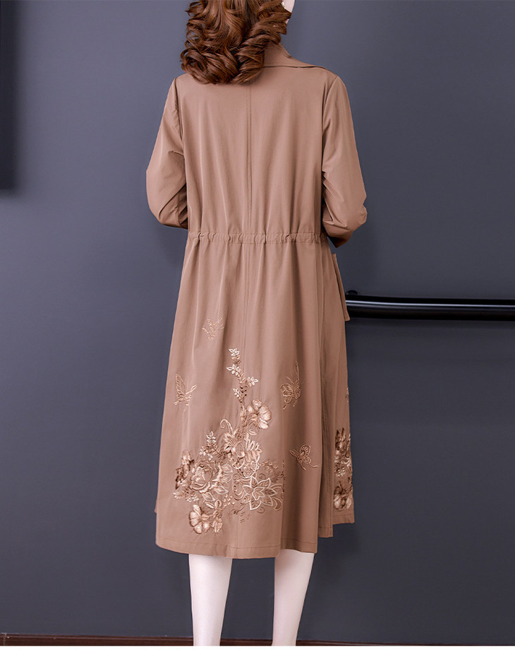 NYL 16617时尚洋气减龄重工刺绣纯色风衣外套
