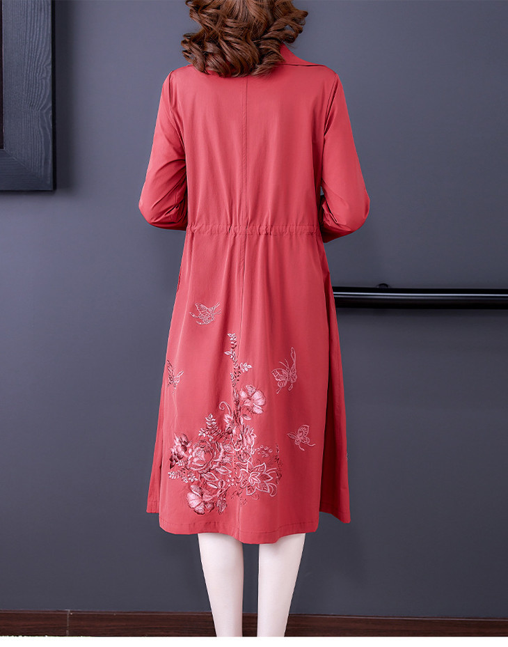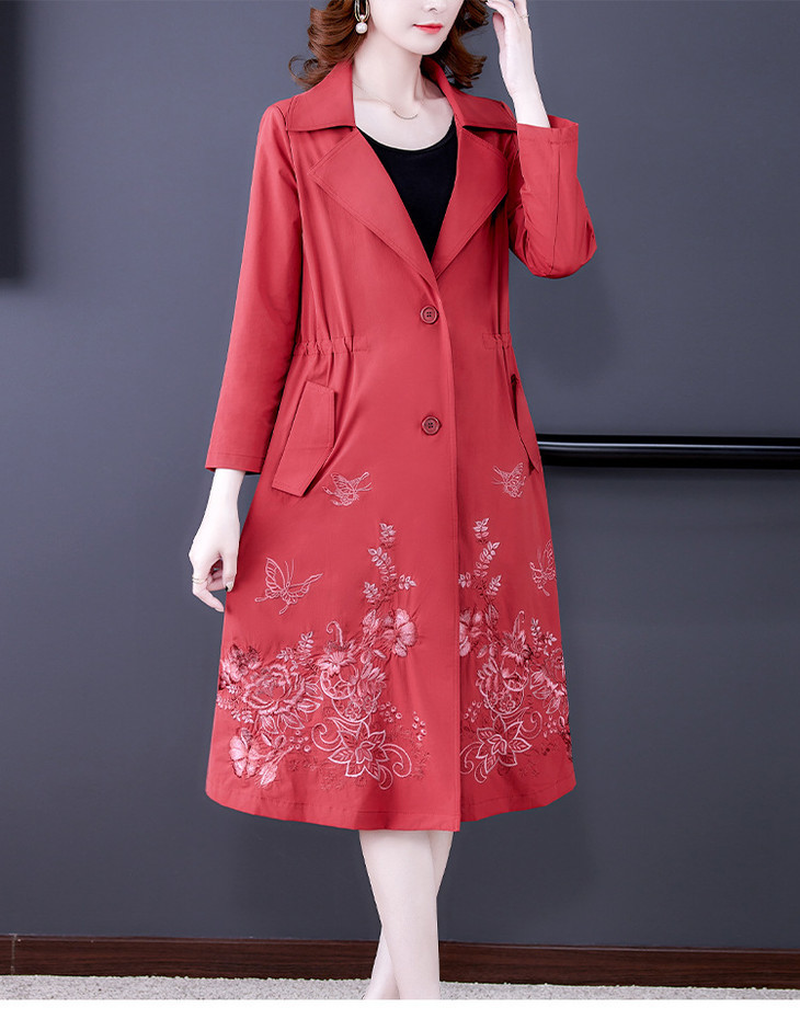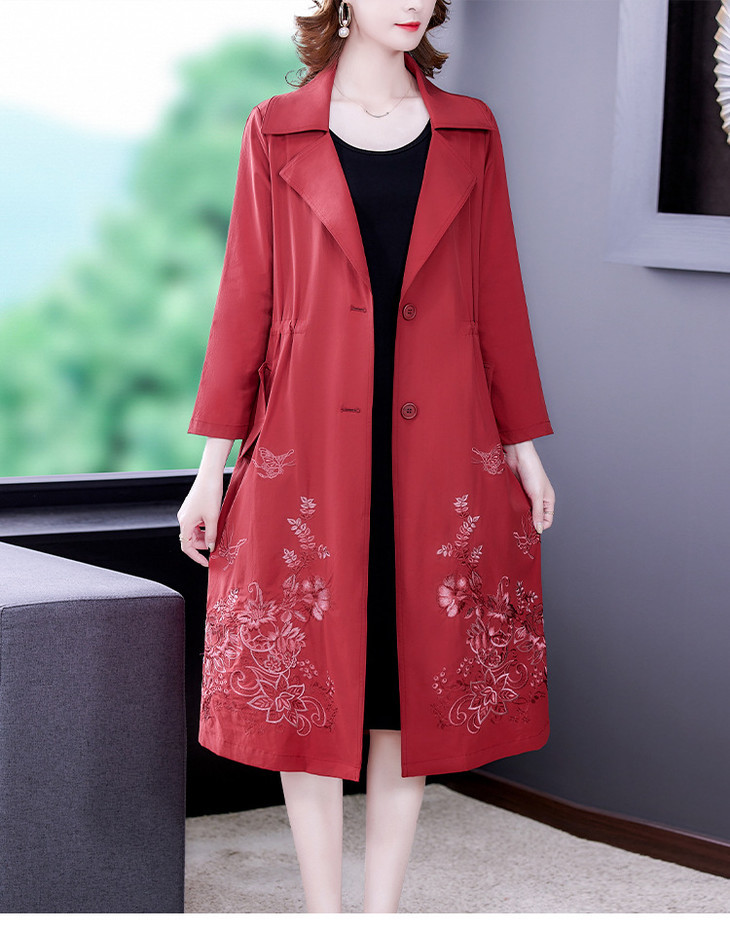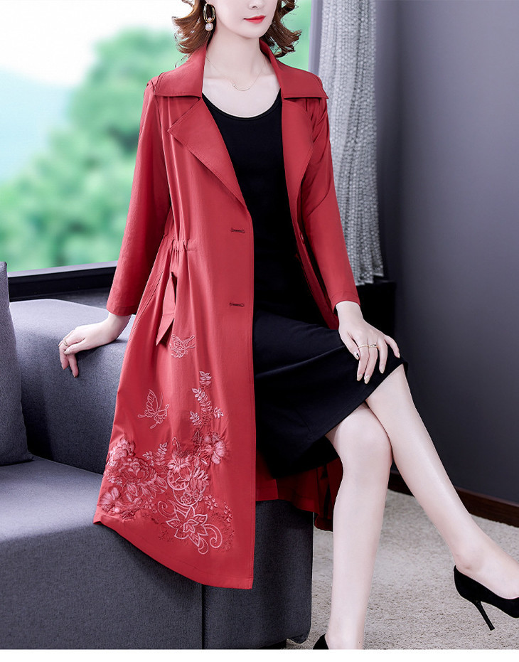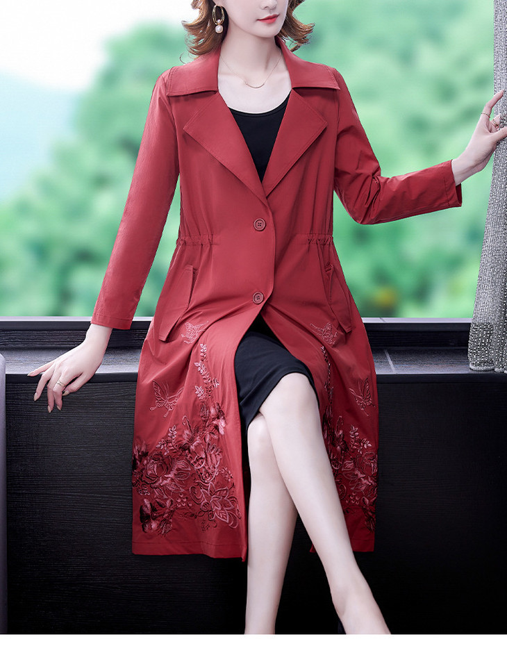 NYL 16617时尚洋气减龄重工刺绣纯色风衣外套