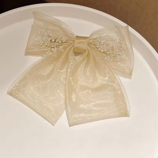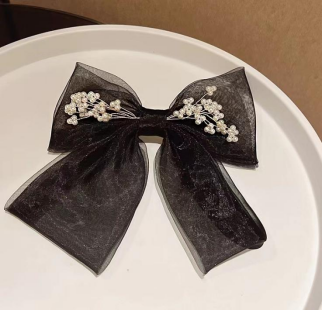 Leswinna欧根纱珍珠蝴蝶结简约百搭发卡