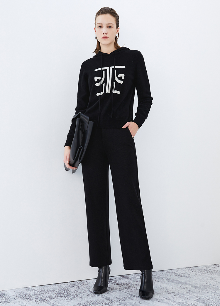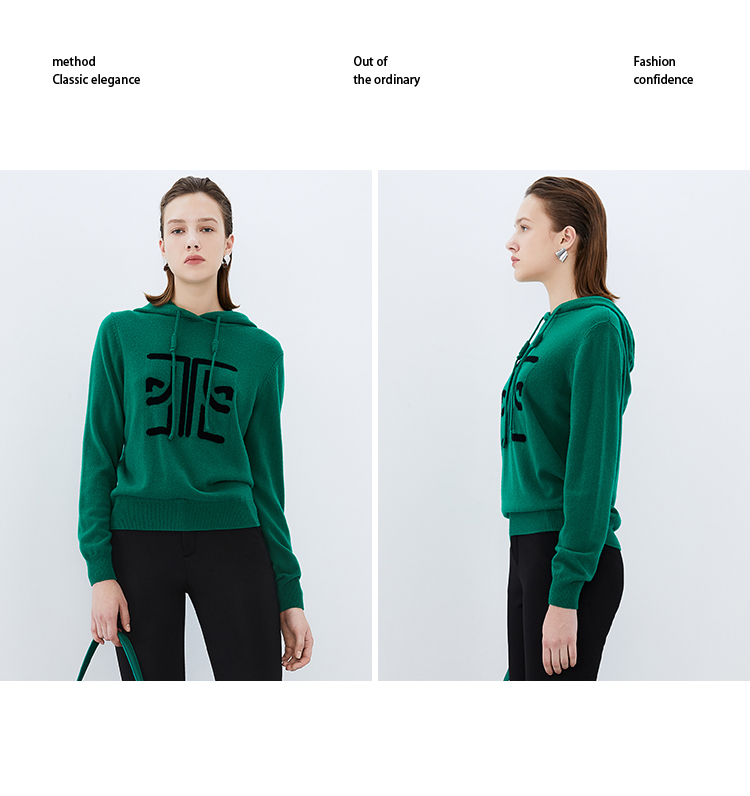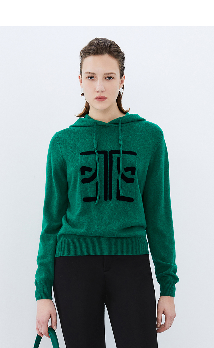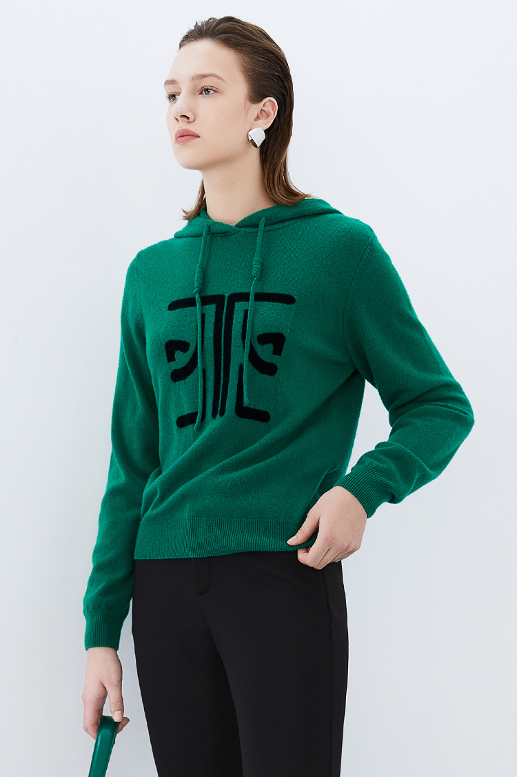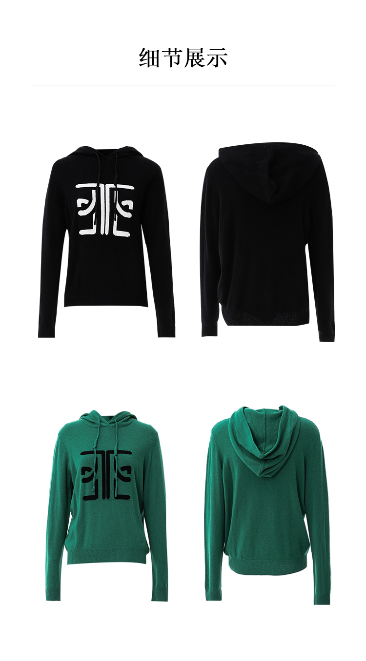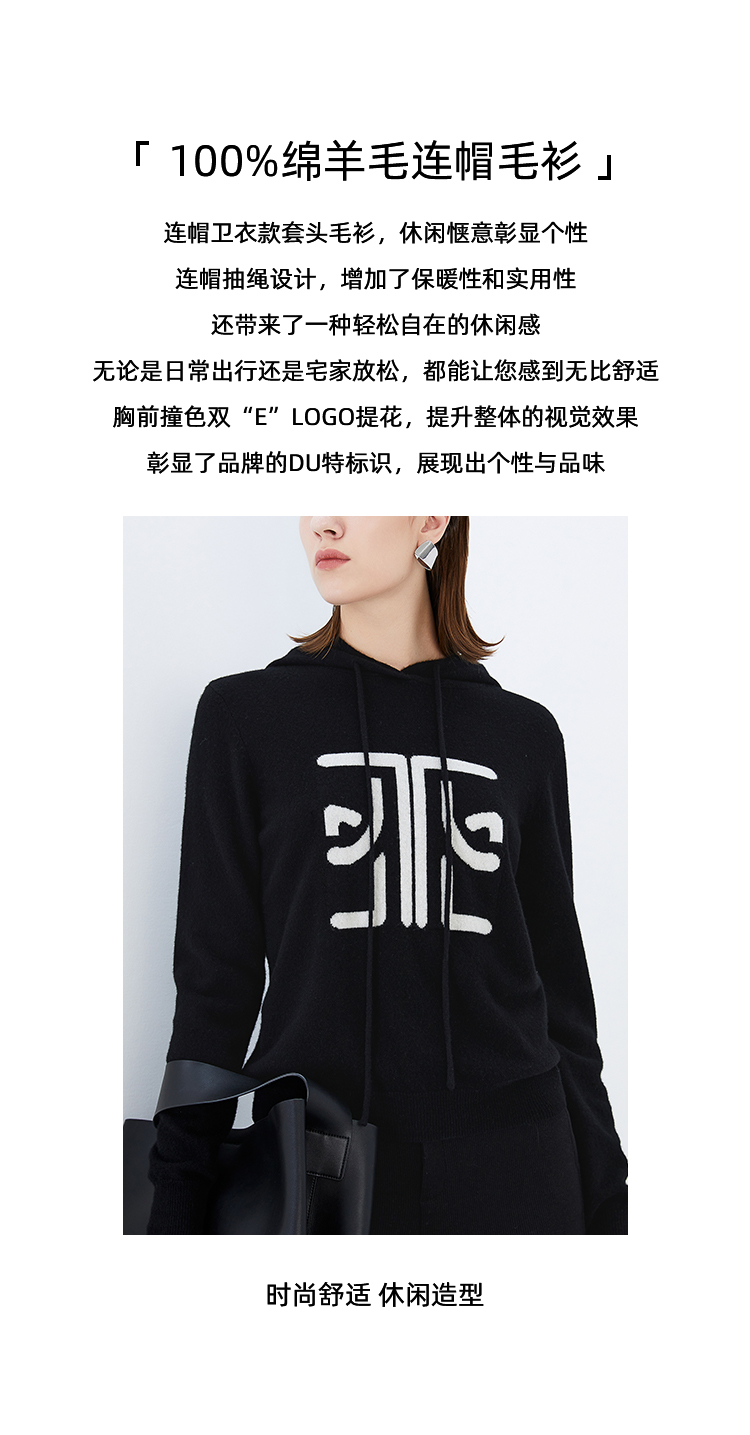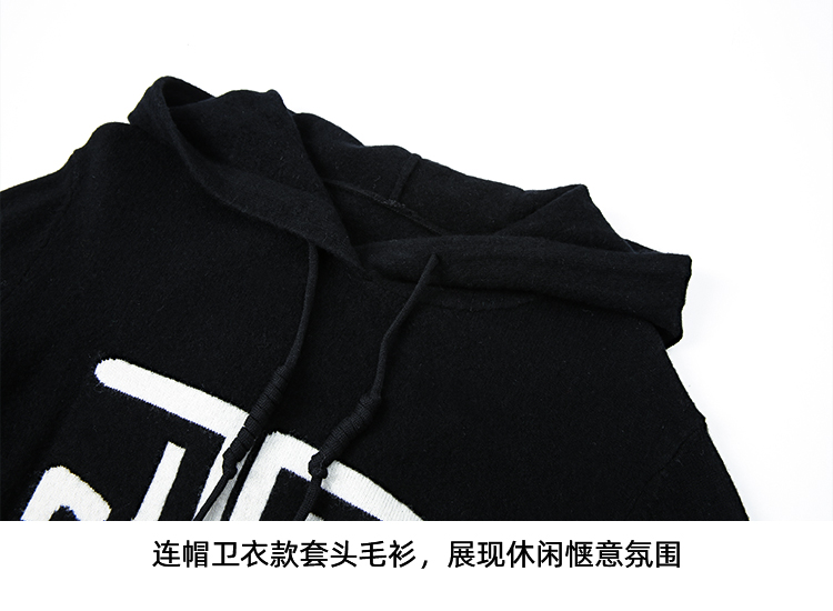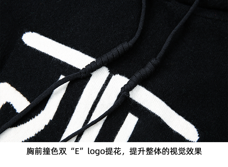 EITIE爱特爱冬季新款套头纯色连帽休闲印花针织衫7601312