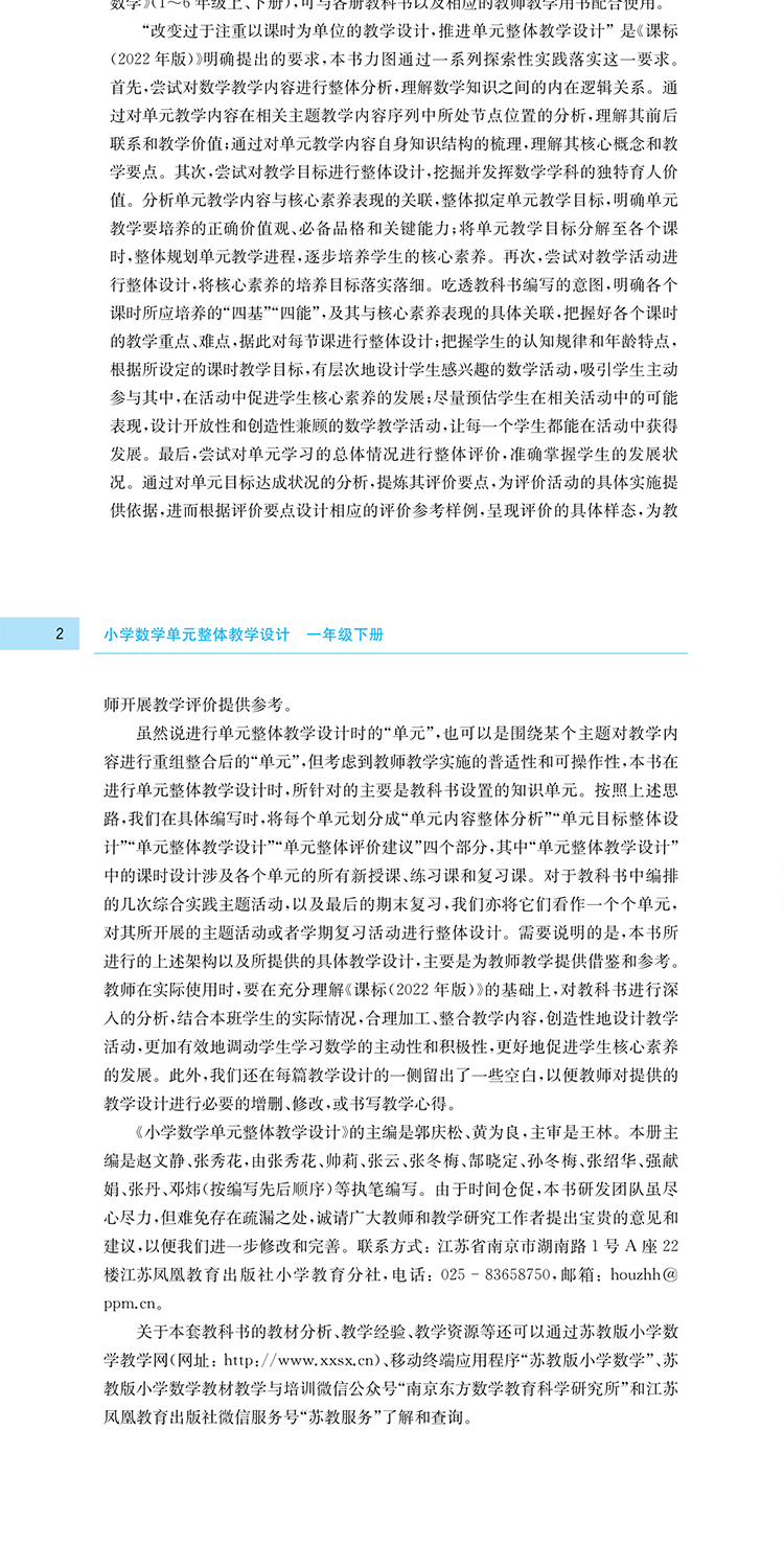 2025春 小学数学单元整体教学设计一年级下册 苏教版 1下 含教学课件数字资源 教师用书 江苏凤凰教育出版社