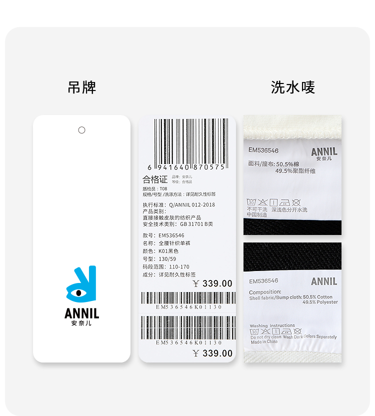 男女童全腰针织单裤秋季新款安奈儿童装EM536546