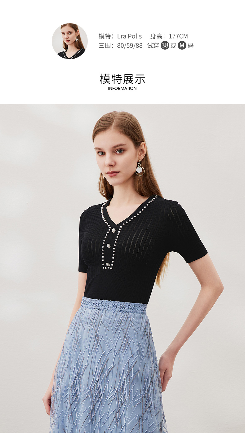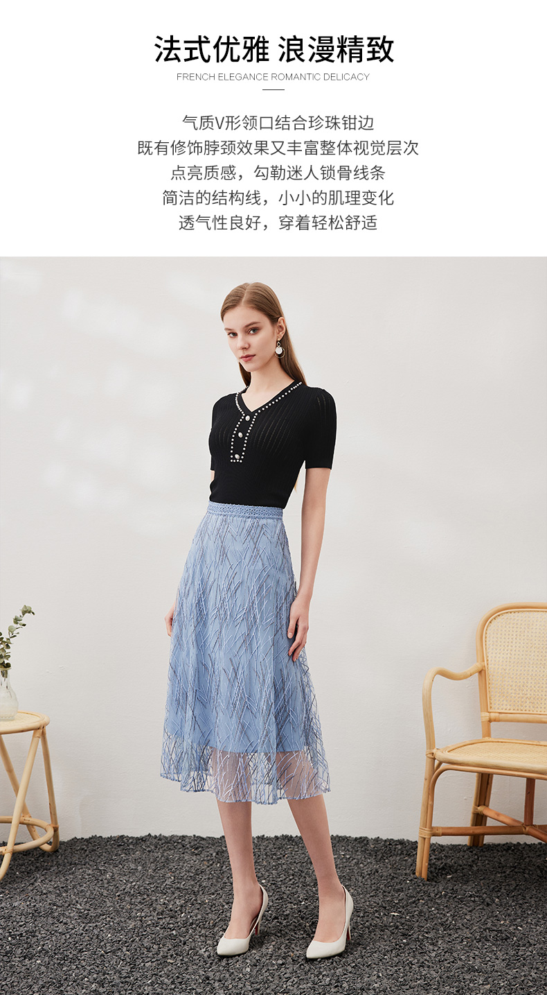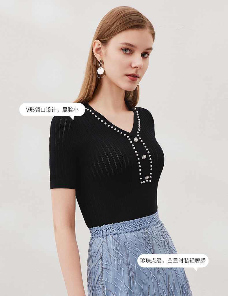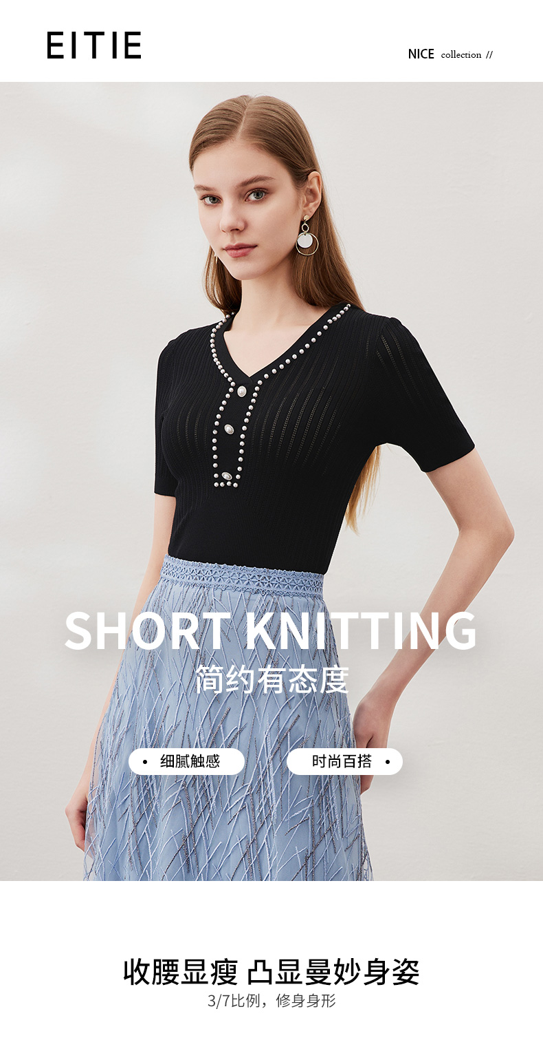 EITIE爱特爱夏季新款时尚百搭纯色V领针织衫女上衣套头7001701