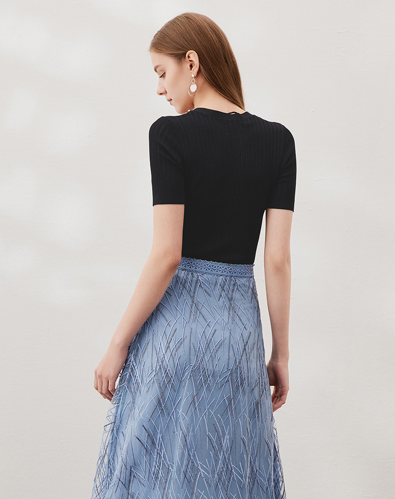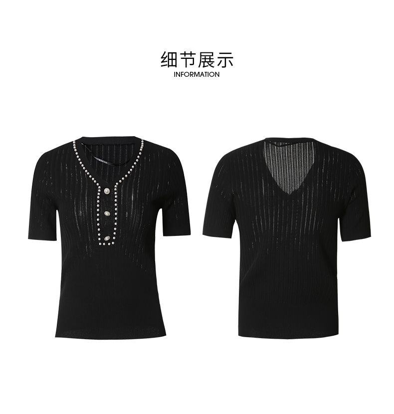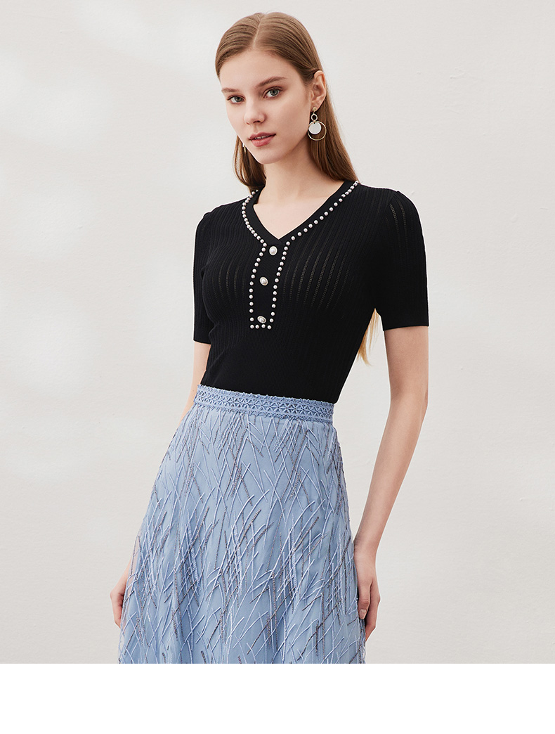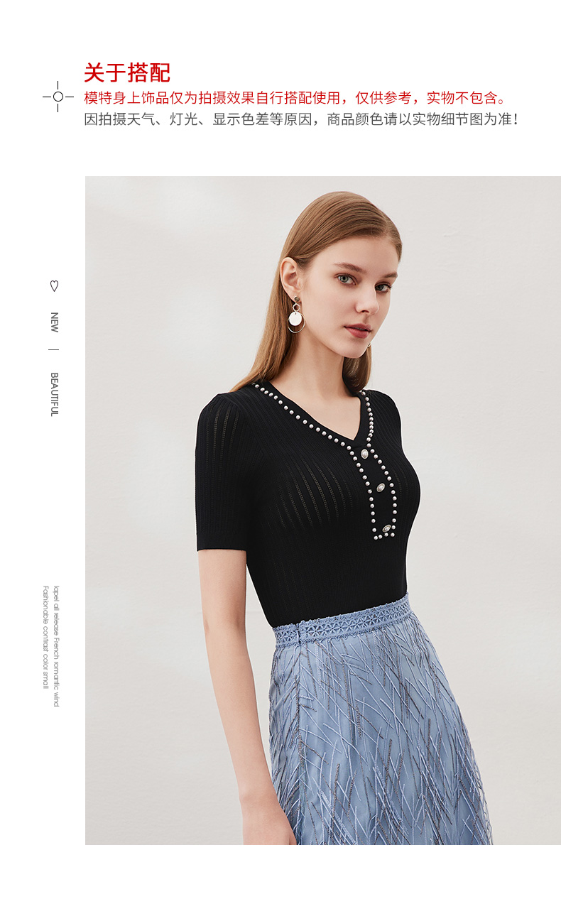 EITIE爱特爱夏季新款时尚百搭纯色V领针织衫女上衣套头7001701