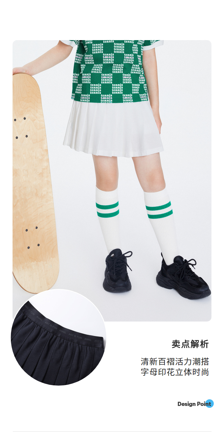 女童半身裙短裙白色百搭女孩夏季新款学院百褶裙子安奈儿童装EG323138