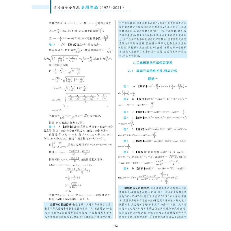 本书是作者近二十年纵向分析、横向对比,五遍做题与长期命题实践、基于高考评价体系研究的成果。对1978-2021年四十四年高考真题进行精编,真题题组选编时没有严格按照时间顺序,而是聚焦知识发生发展的过程,聚焦知识的逻辑关系,通过并列式和递进式的真题题组实现在问题解决过程中把握本质以及提升思维能力,在题组答案部分设置了学科观念、规律总结与思维方法提炼,作为《高考数学全国卷解密》的姊妹篇,增加了高考真题更多角度的解答,使大家更好的把握高考命题的规律以及时代育人要求。