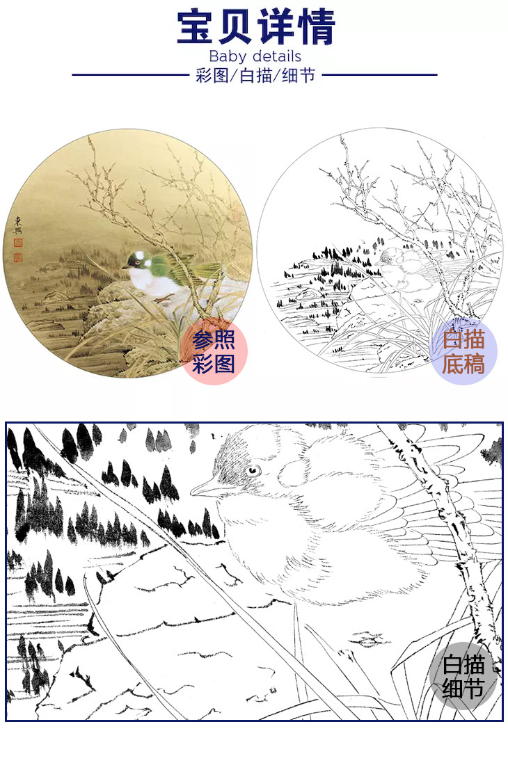 工笔动物白描底稿-鸳鸯-斗方小品册页-A309