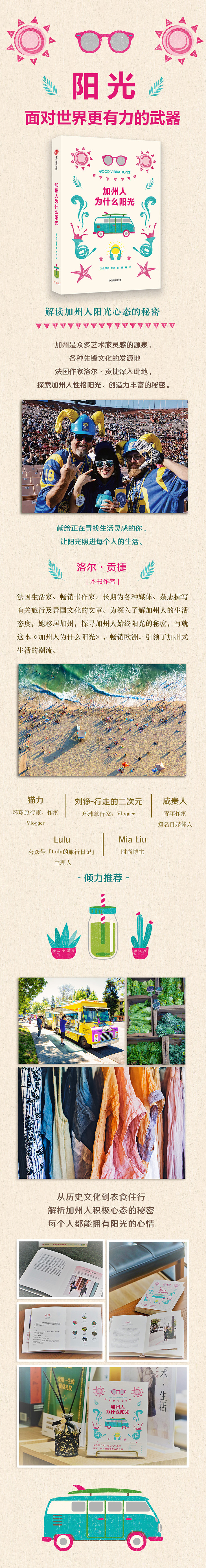《加州人为什么阳光》的每一张图片,都来自受广大读者喜爱的摄影师,经过精挑细选。精美的摄影作品和与文字搭配协调的版式,让阅读对每一个读者来说,都是一场视觉的享受。