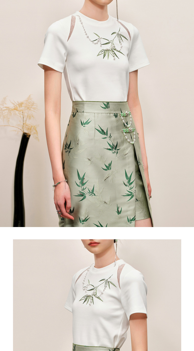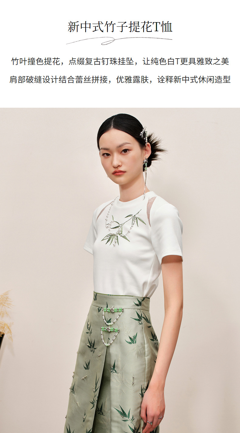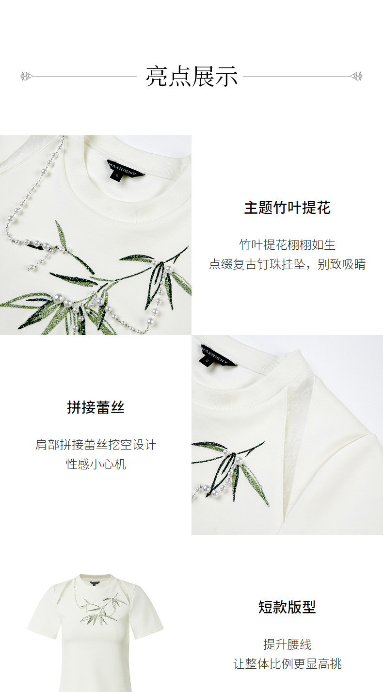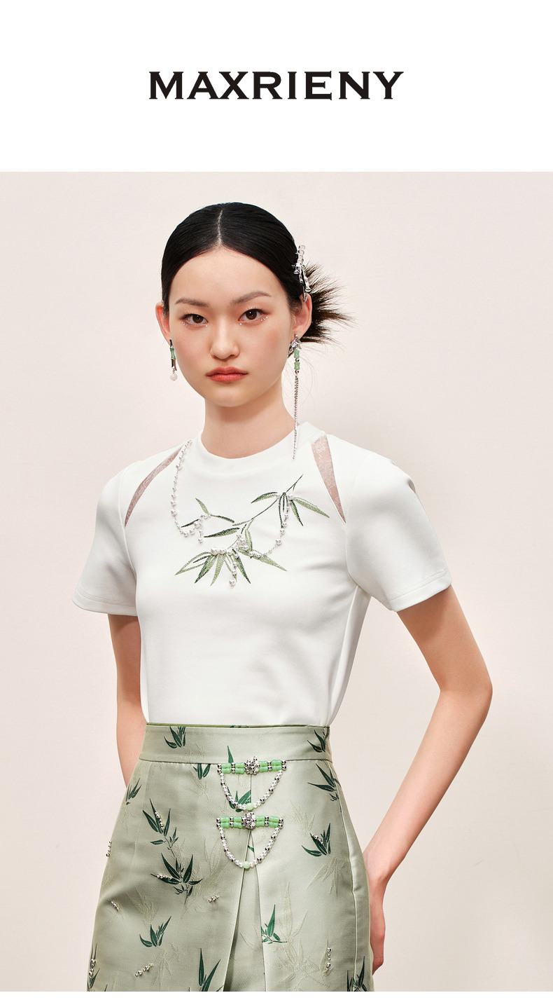 MAXRIENY新中式竹子提花t恤修身上衣薄荷曼波风(货号:MC88TS503)