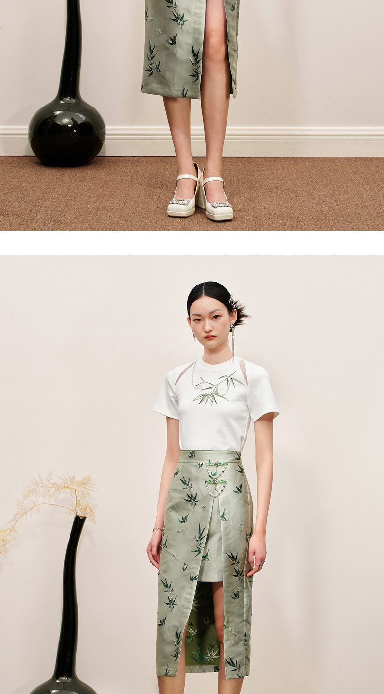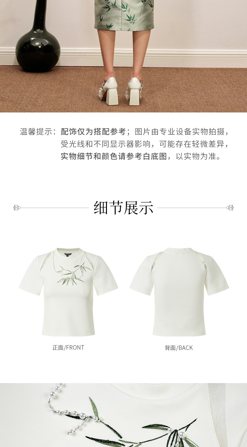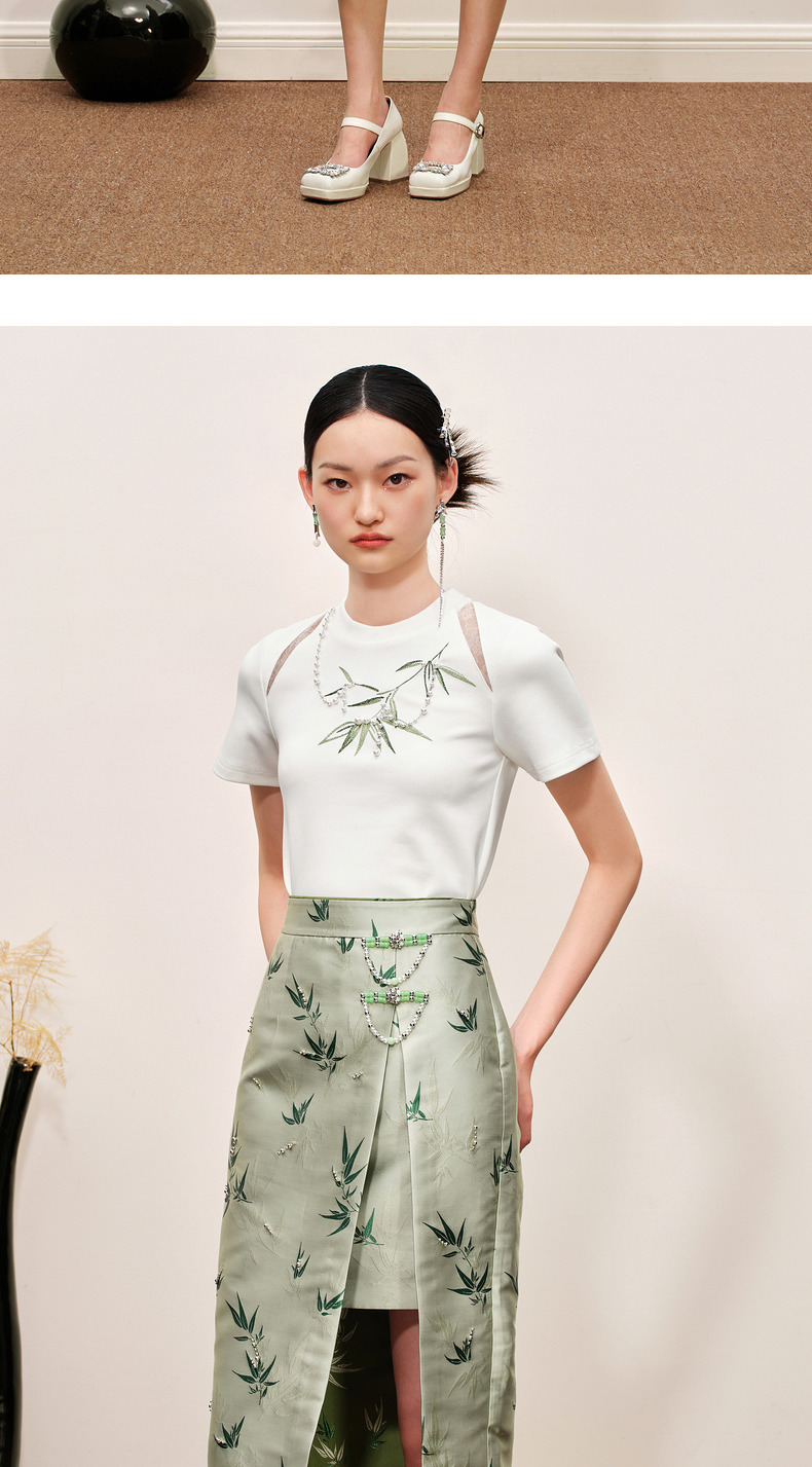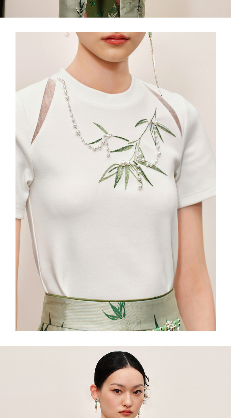 MAXRIENY新中式竹子提花t恤修身上衣薄荷曼波风(货号:MC88TS503)