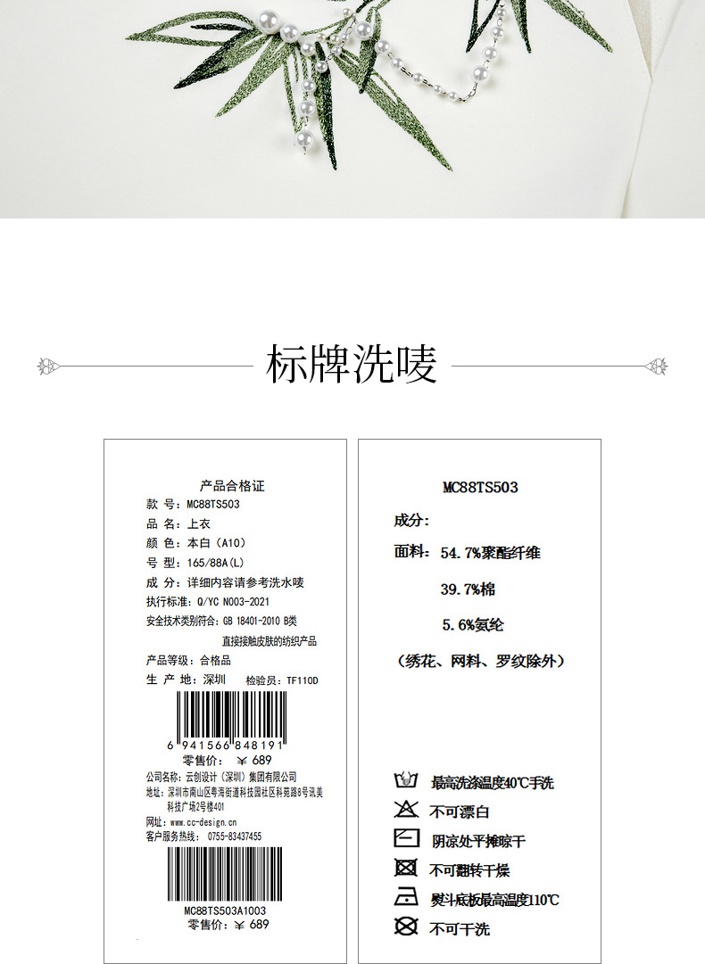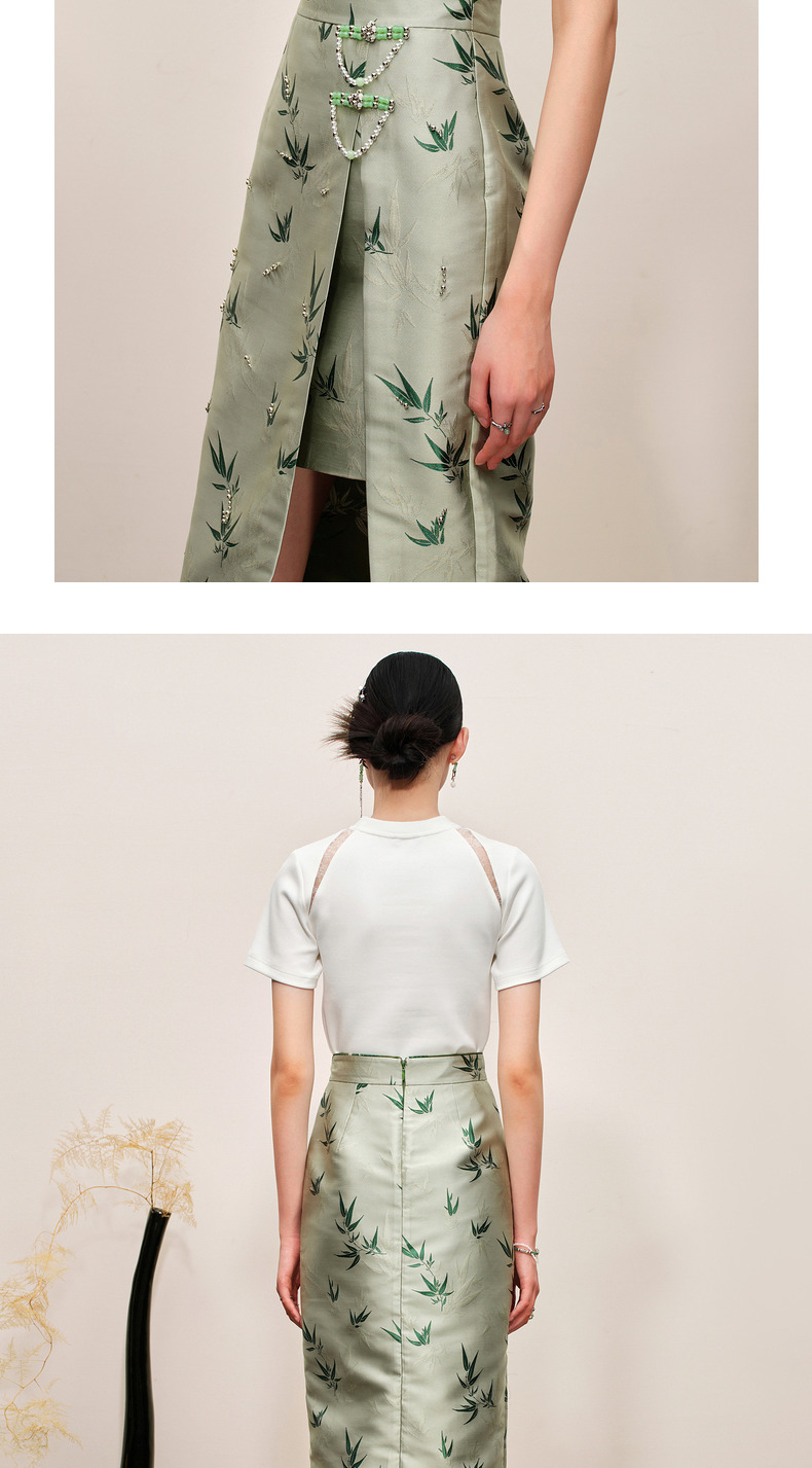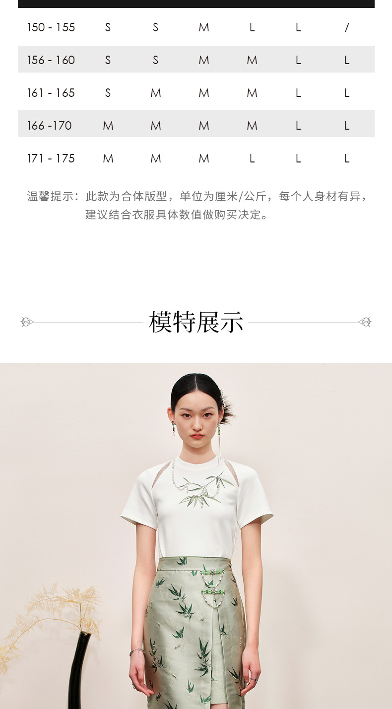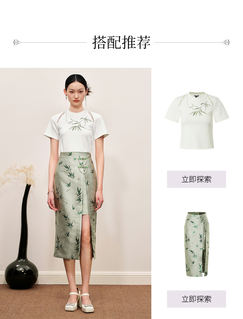 MAXRIENY新中式竹子提花t恤修身上衣薄荷曼波风(货号:MC88TS503)