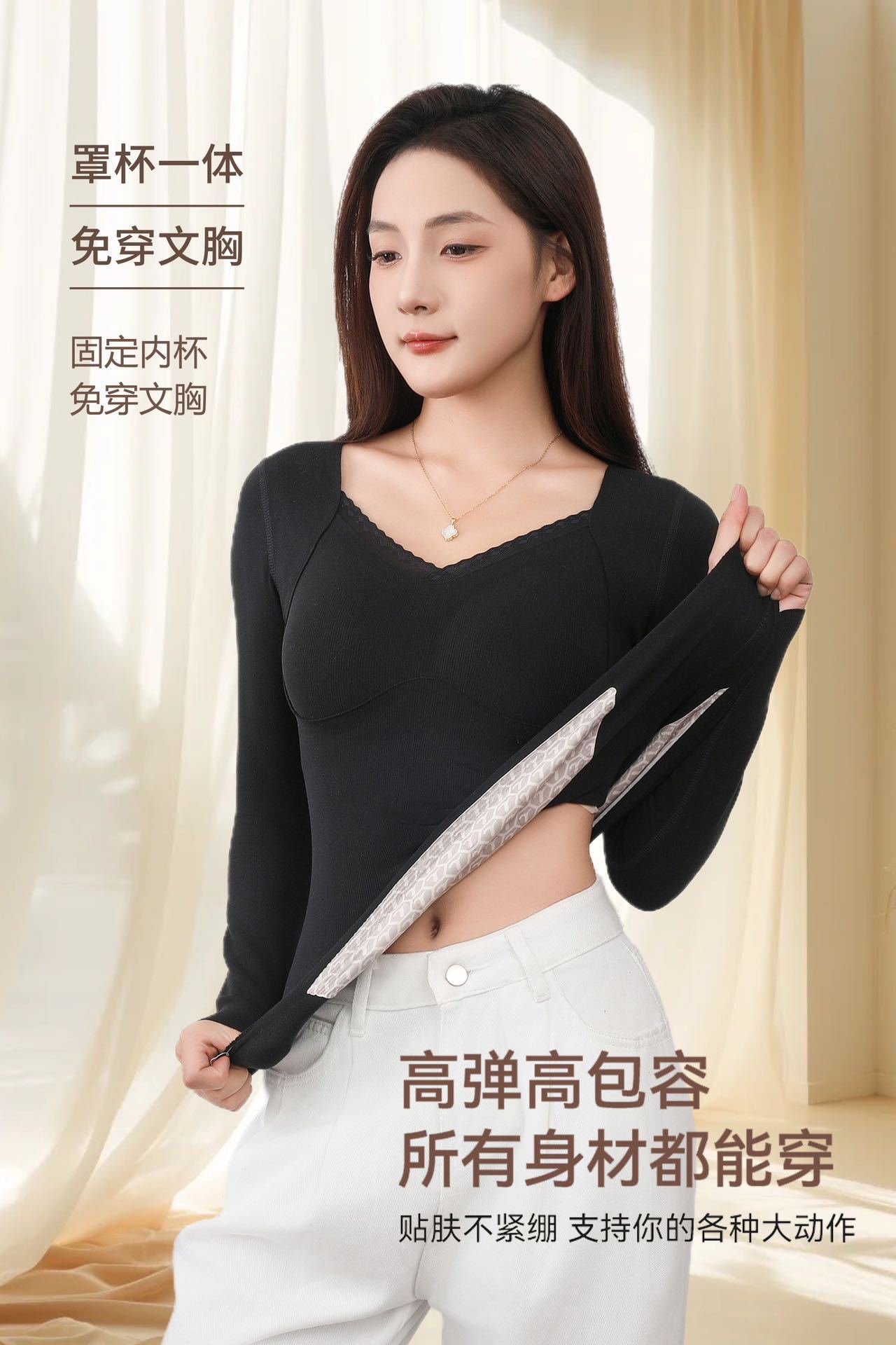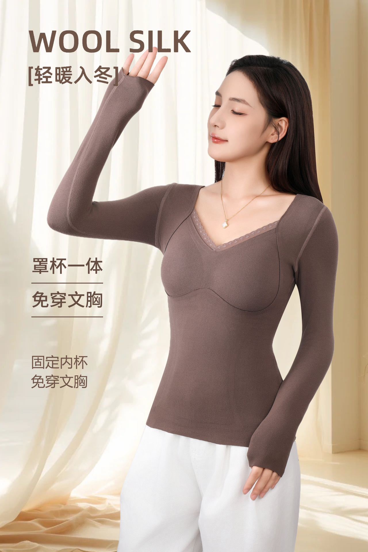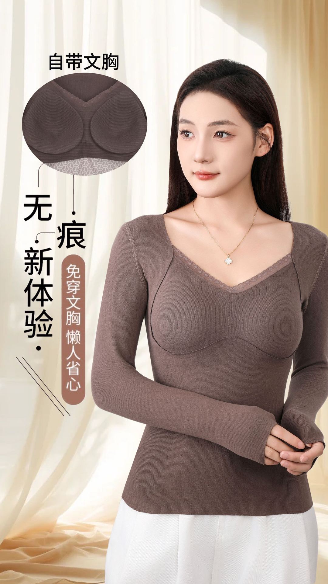 热卖69.9开秒❗️❗️❗️【免穿文胸❗️羊毛锁温 | 暖而无痕】秋冬季保暖背心女羊毛圆领固定胸垫加绒无痕内搭打底内衣。hb