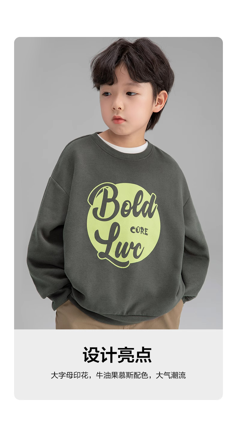 【字母印花卫衣!圆领潮流卫衣】男童卫衣春秋款儿童上装,圆领洋气打底上衣秋装潮,牛油果慕斯配色,大气潮流,柔软的面料,给孩子温暖的呵护lm