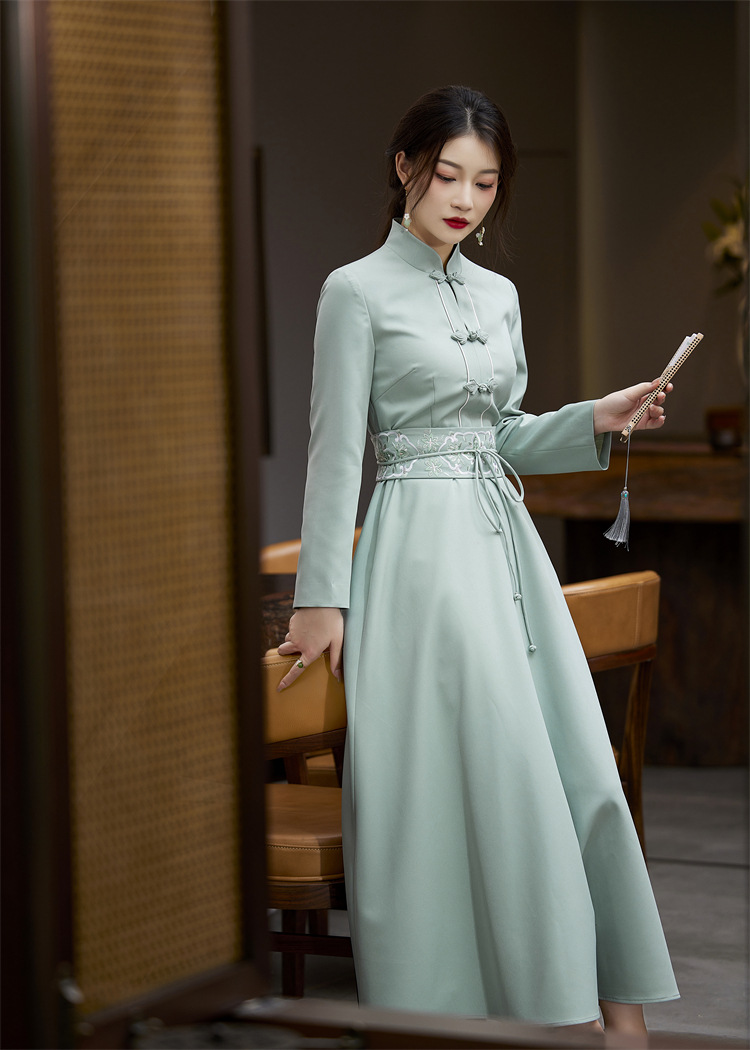 FLZD-A9056 2022秋季新款纯色简约风雅国风复古中式连衣裙