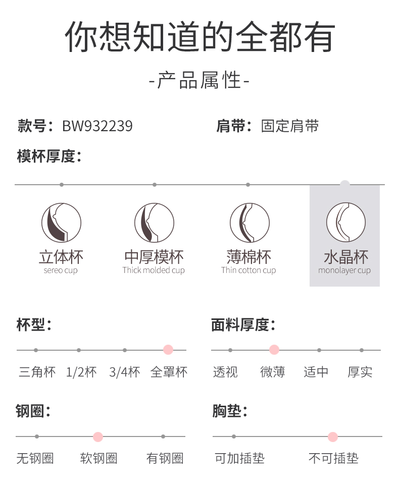 贝佳人聚拢薄款调整型舒适文胸软钢圈背心深V水晶杯内衣BW932239