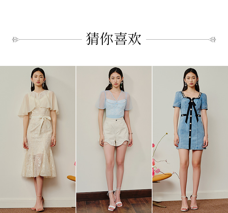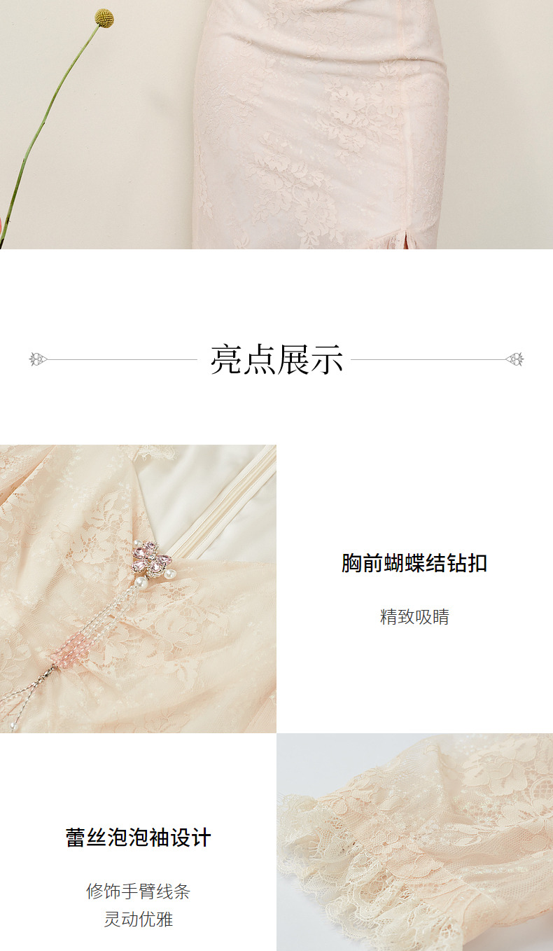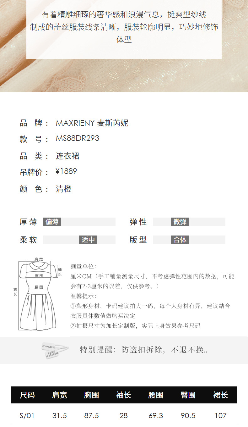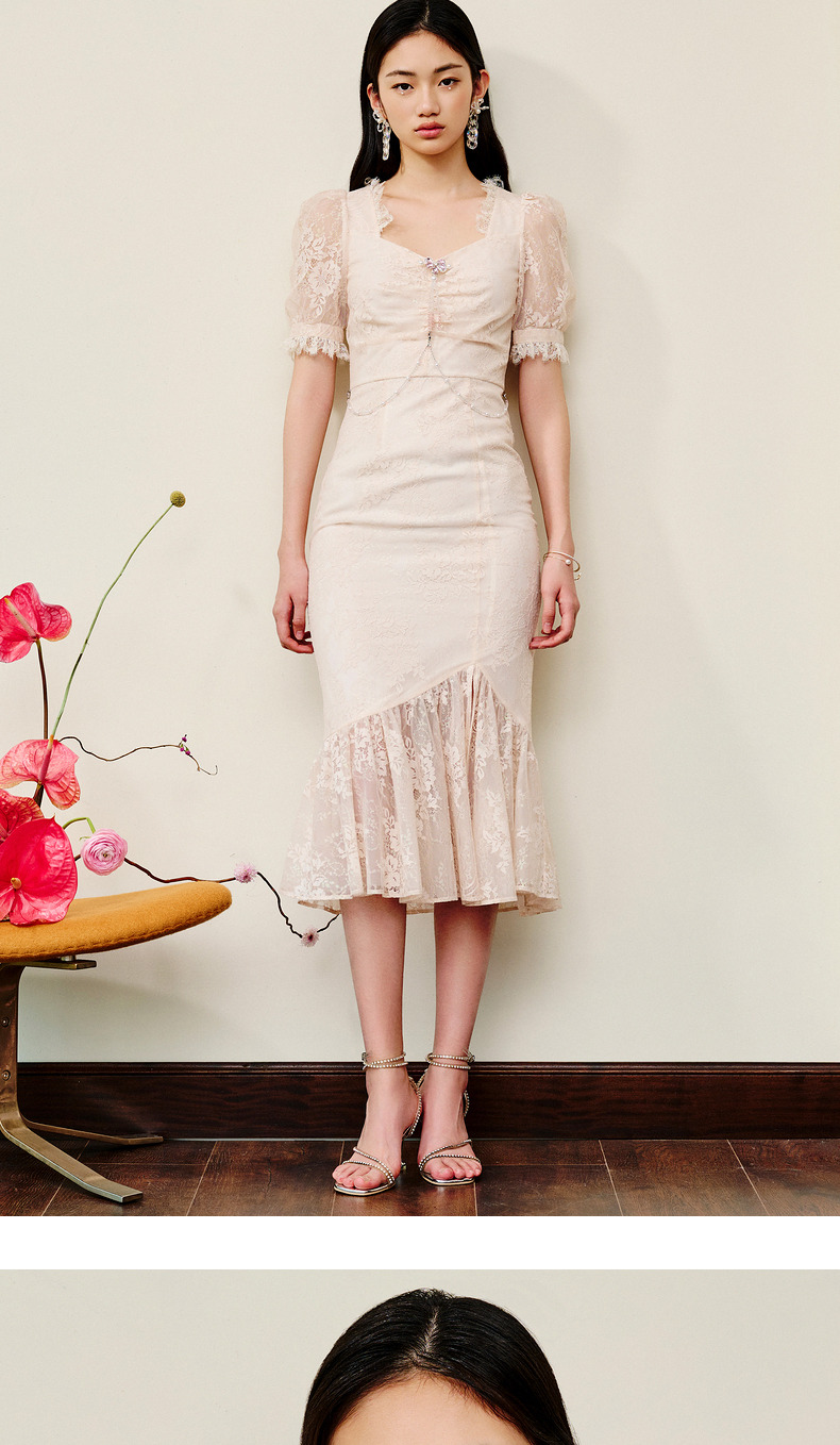 MAXRIENY法式浪漫复古感连衣裙蕾丝泡泡袖茶歇裙(货号:MS88DR293)