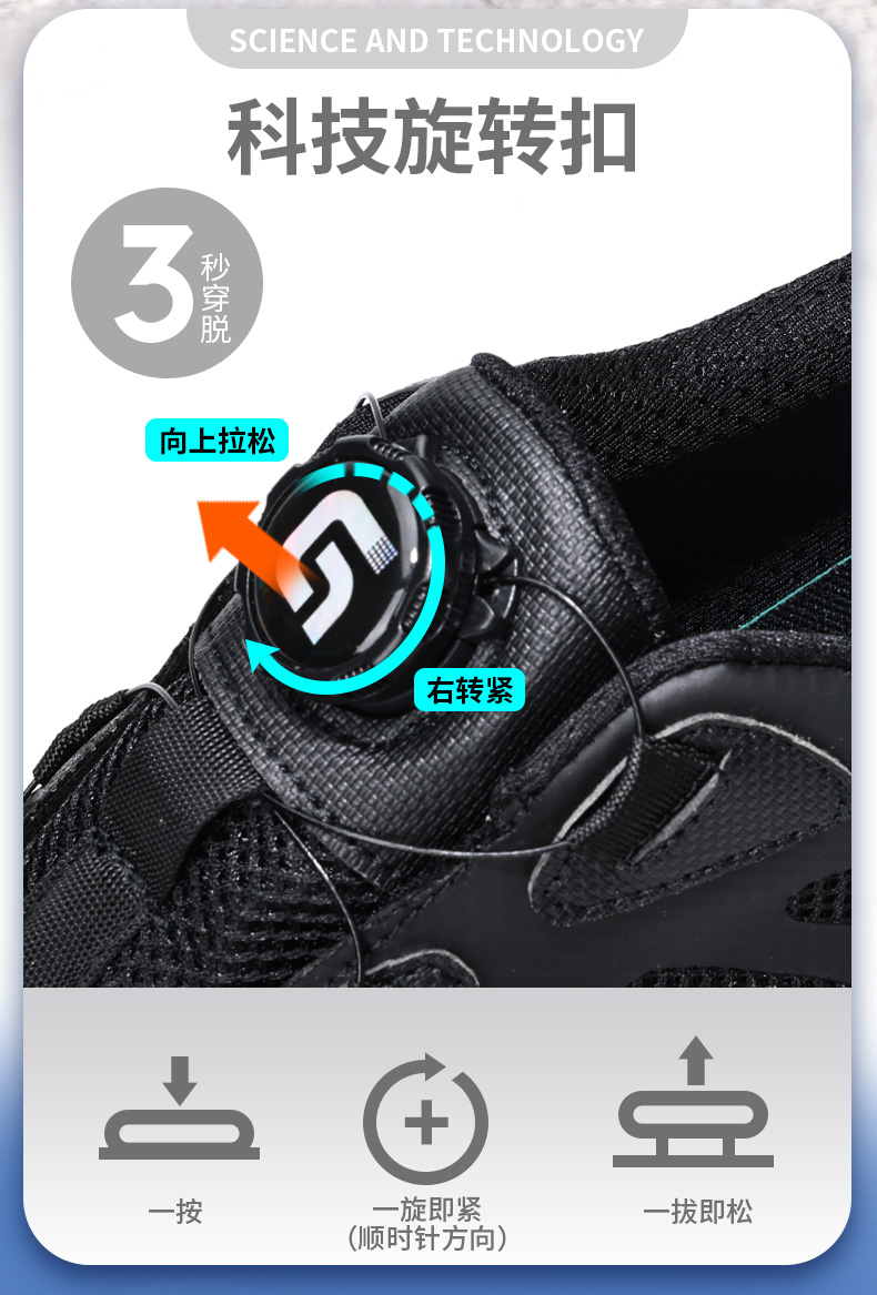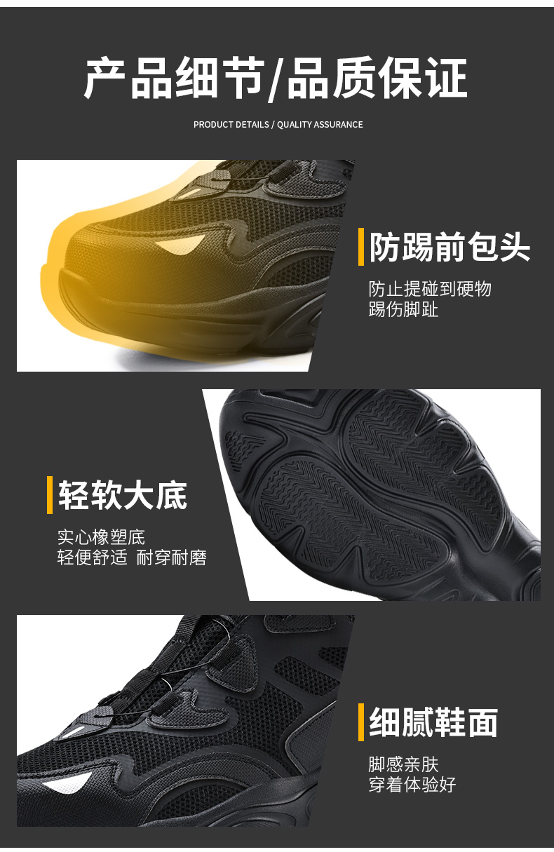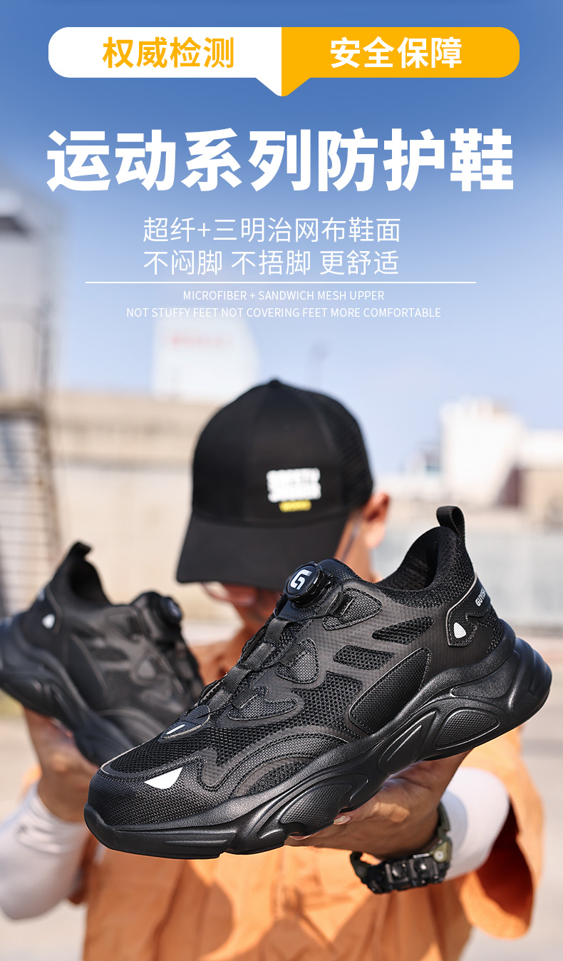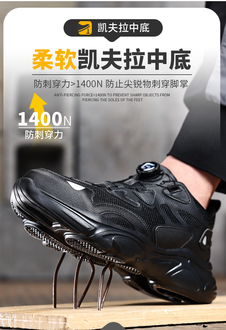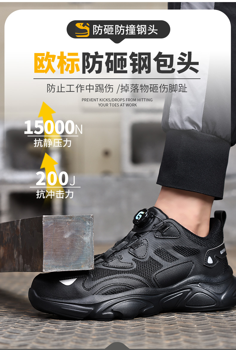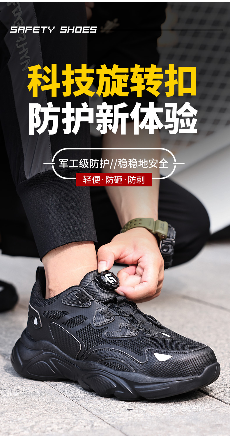 【旋转纽扣】新品透气轻便劳保鞋男防砸防刺网布工地安全鞋方便穿脱