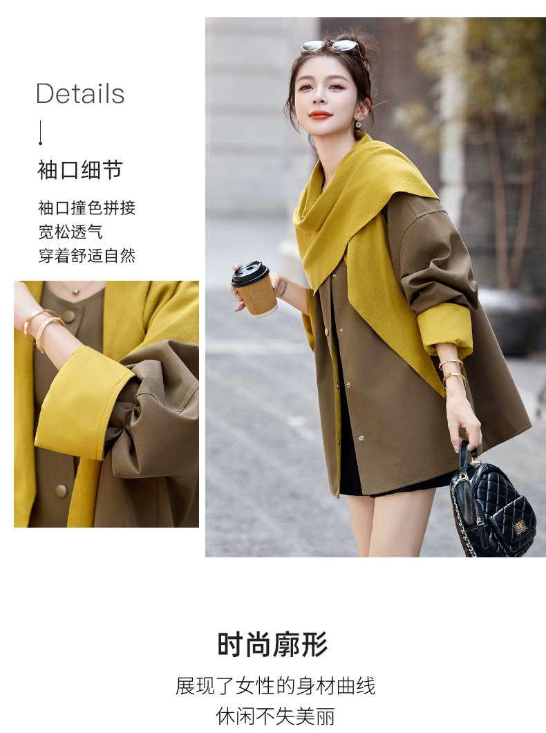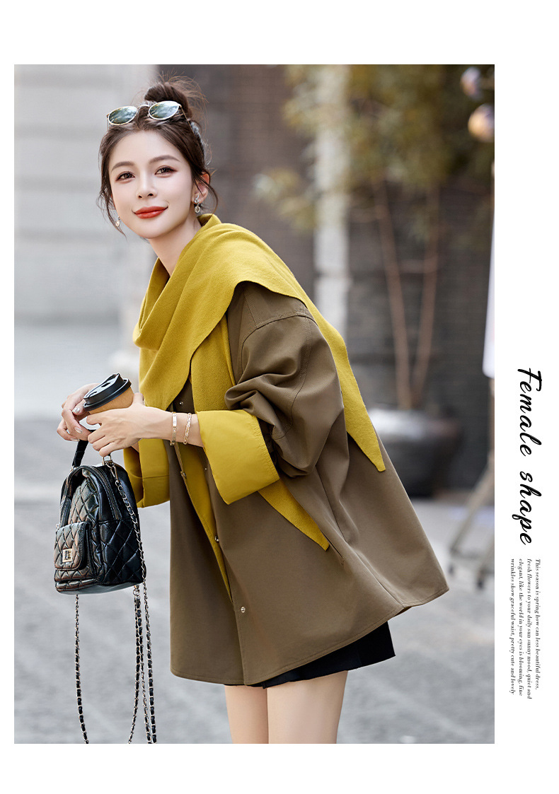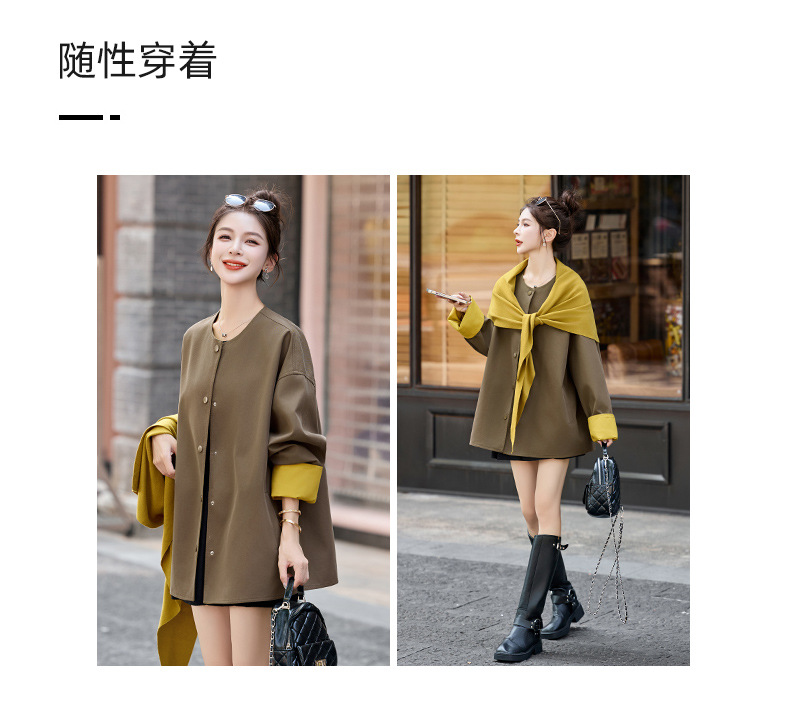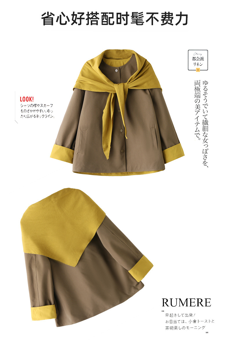 韩系ins风圆领披肩风衣,时尚设计感休闲上衣HR-AQHUI8121