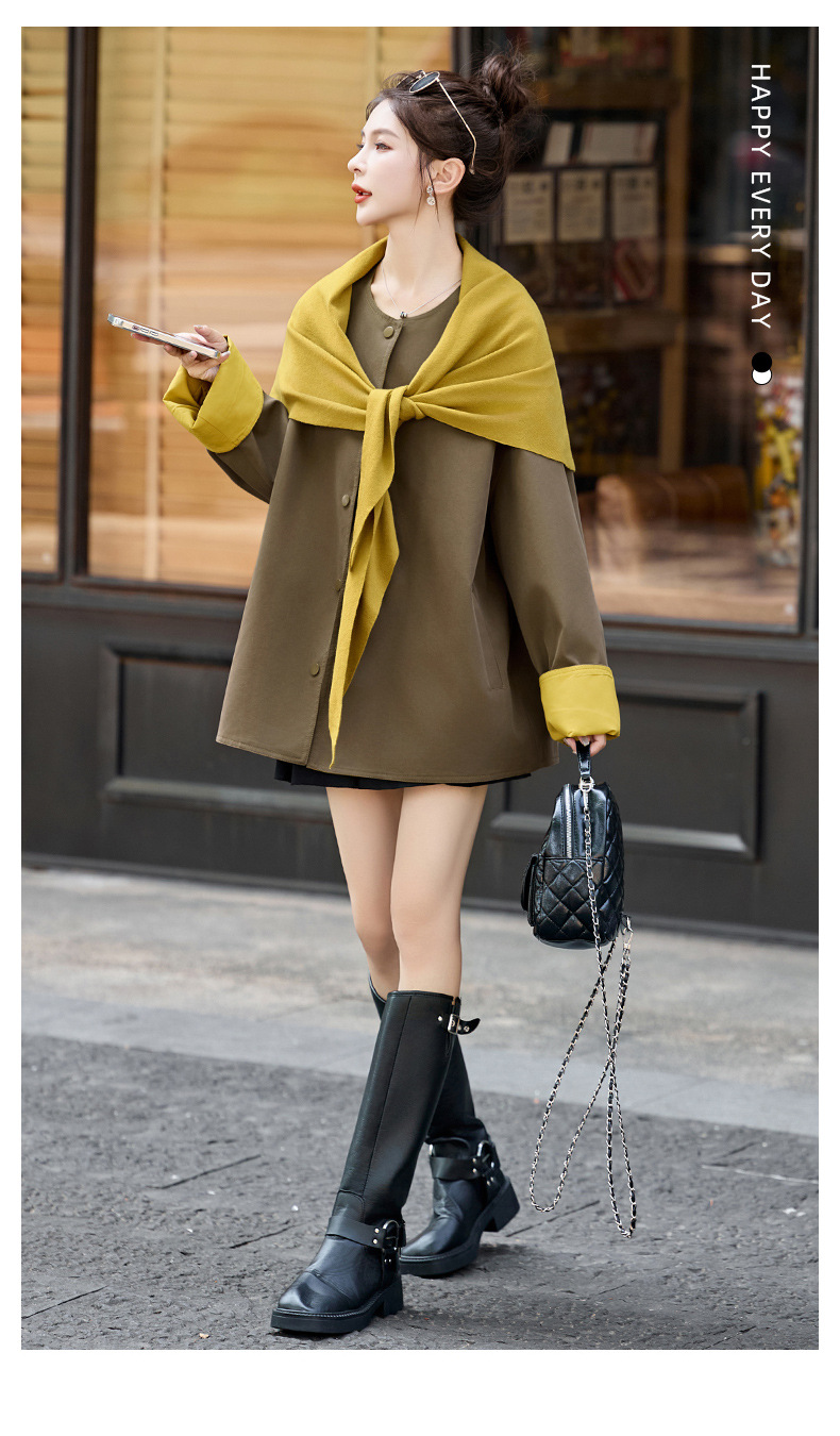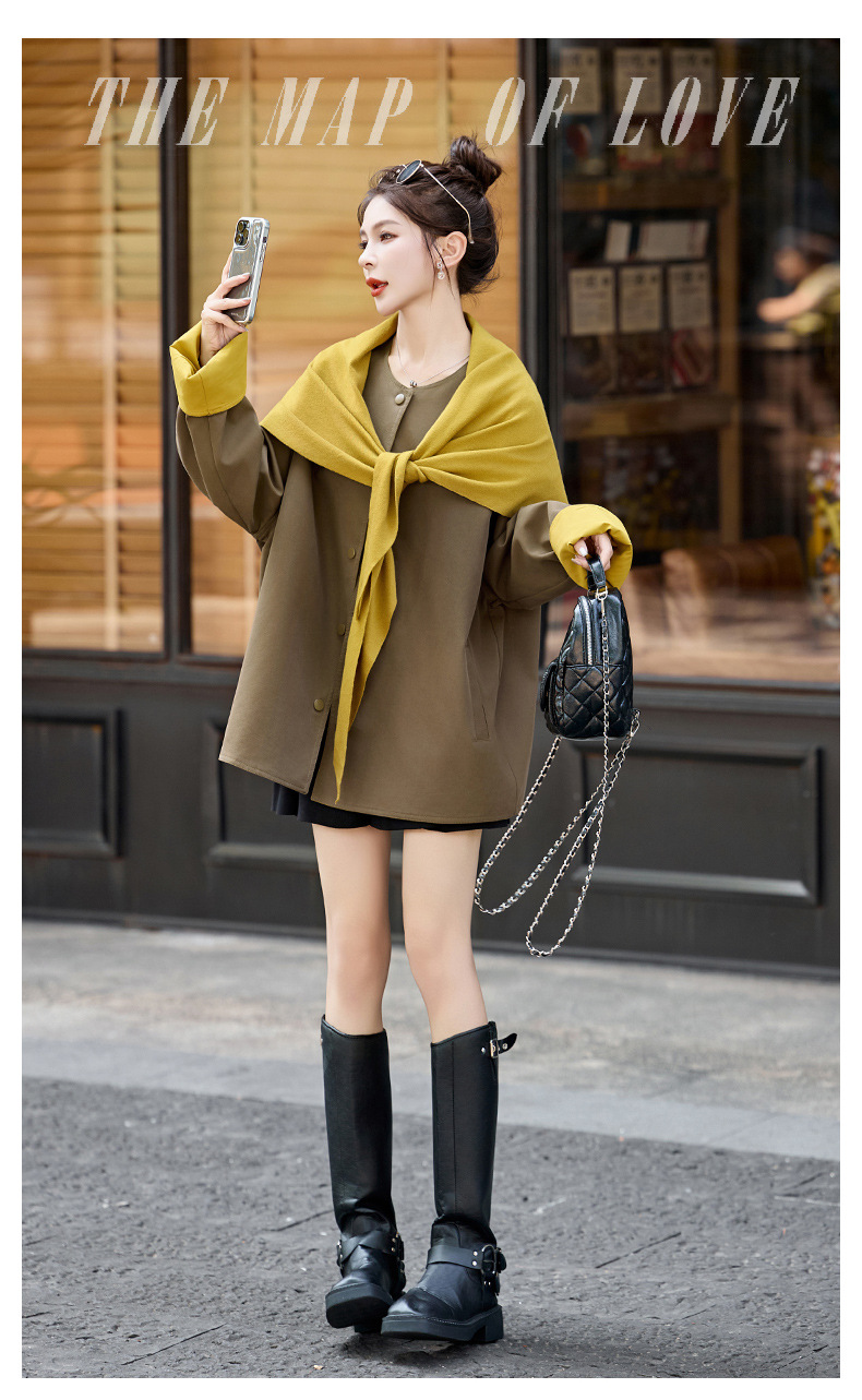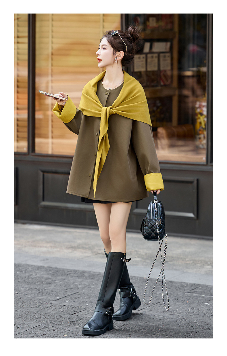 韩系ins风圆领披肩风衣,时尚设计感休闲上衣HR-AQHUI8121