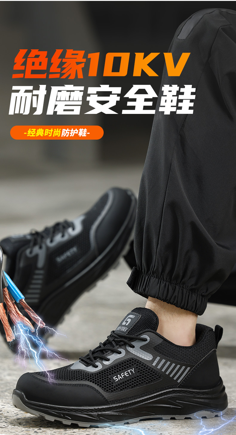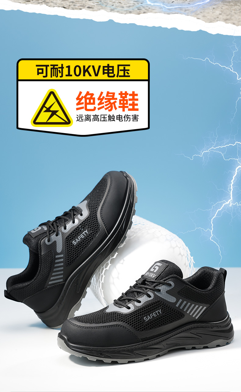 新款四季绝缘10KV实心底达标塑包头劳保鞋