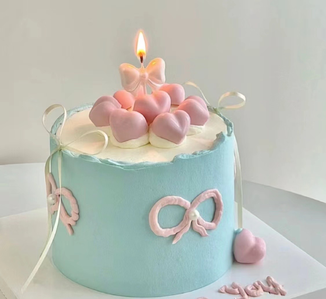 陷入心动薄荷蓝丝带蛋糕