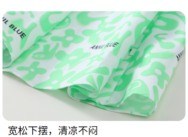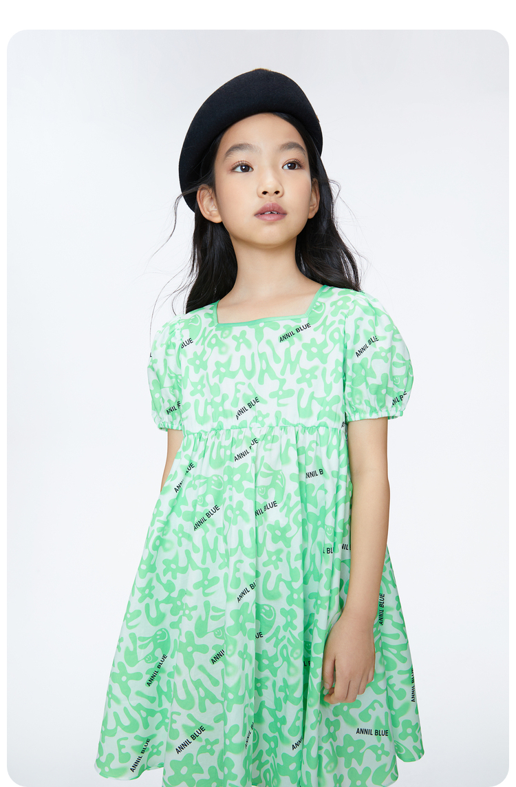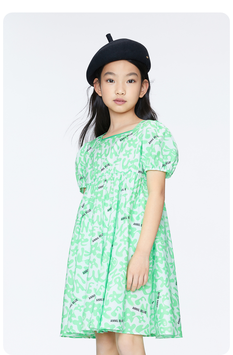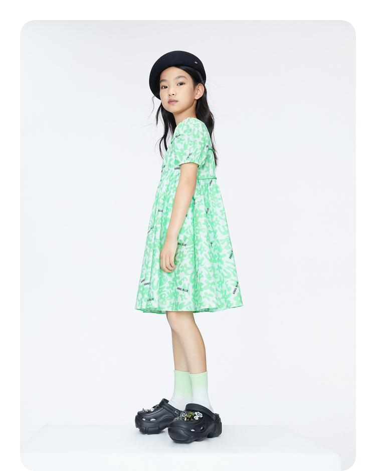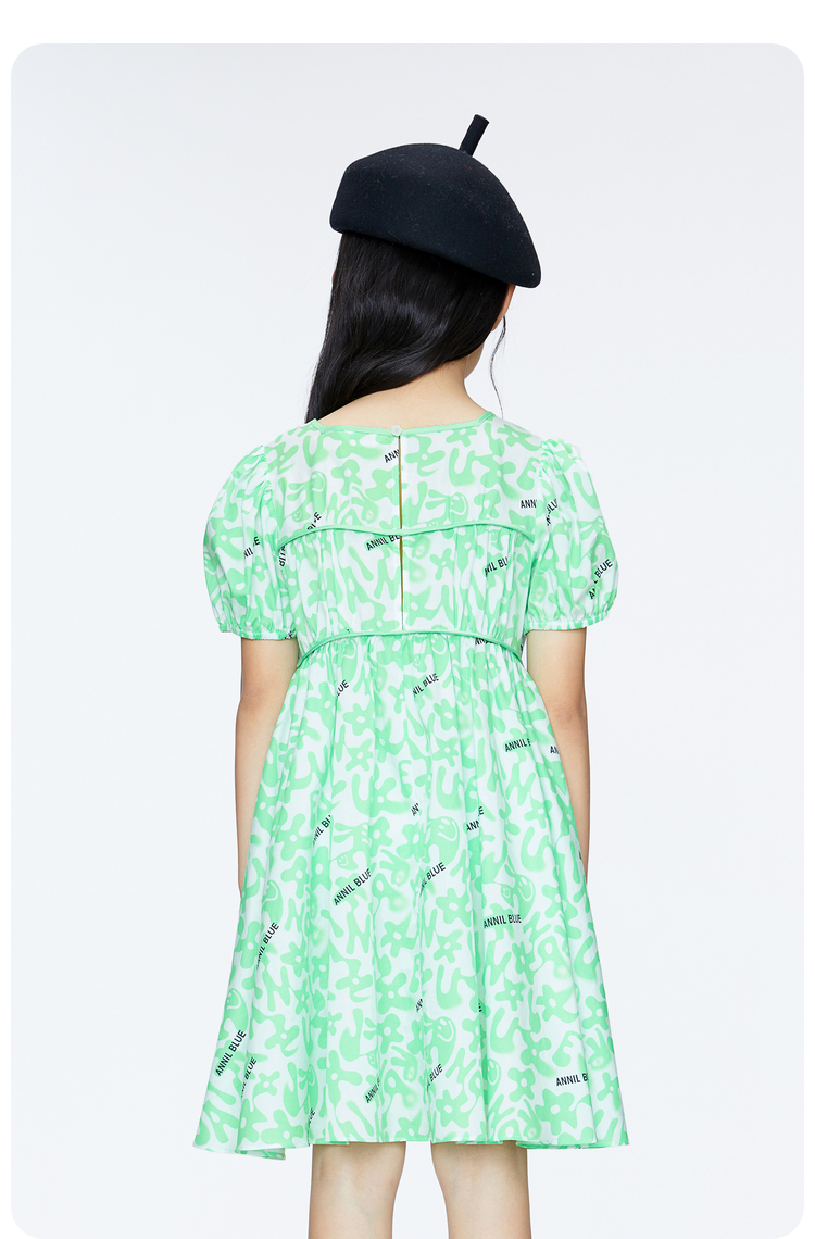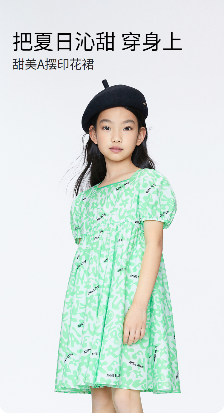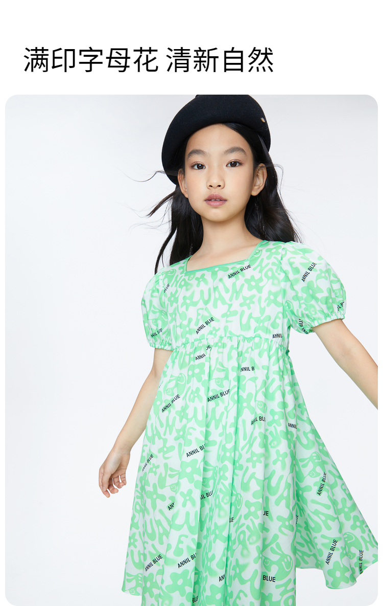 女童甜美印花裙短袖连衣裙裙子BLUE新款安奈儿童装实体店同款AG423827