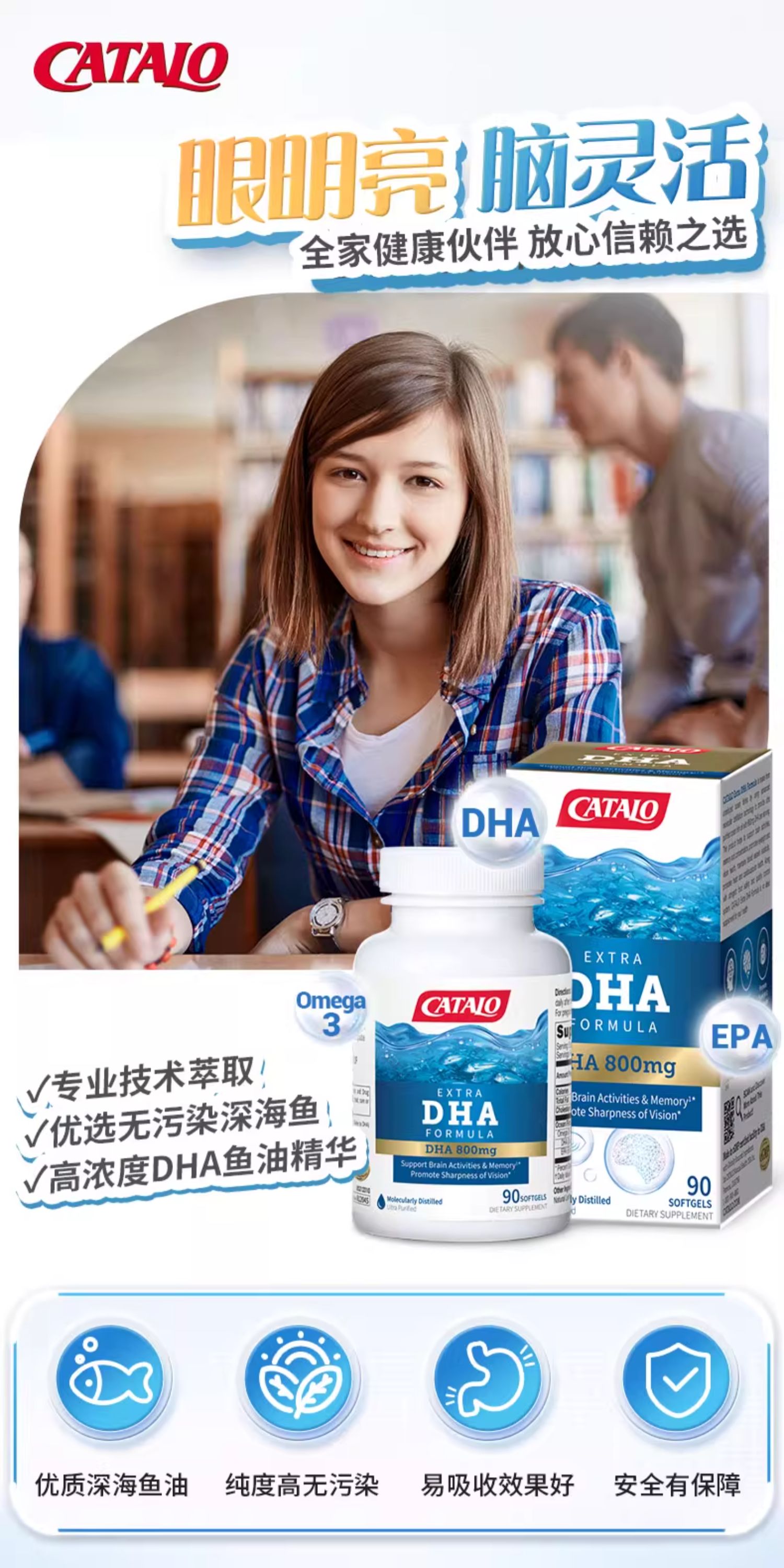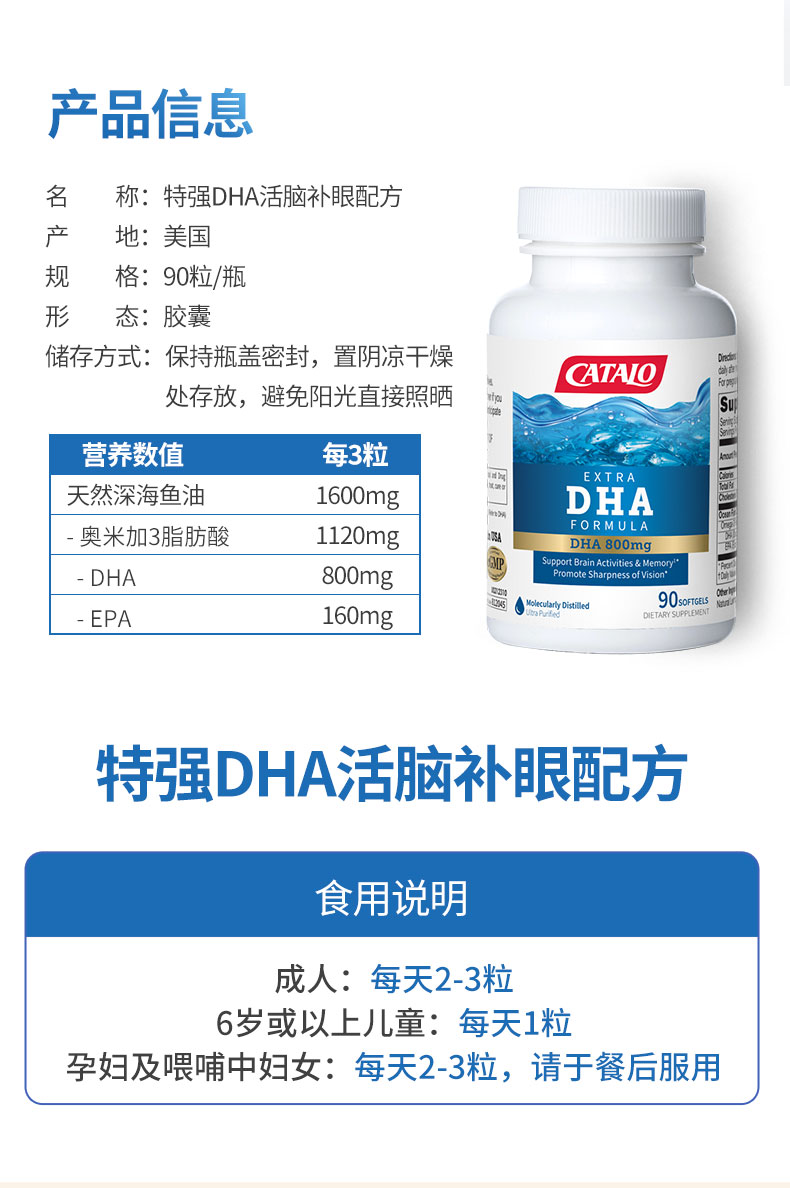 CATALO家得路特强DHA活脑补眼配方90粒 英文版(2028.1)