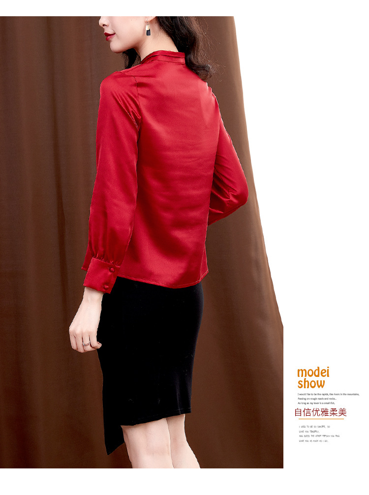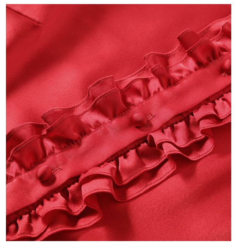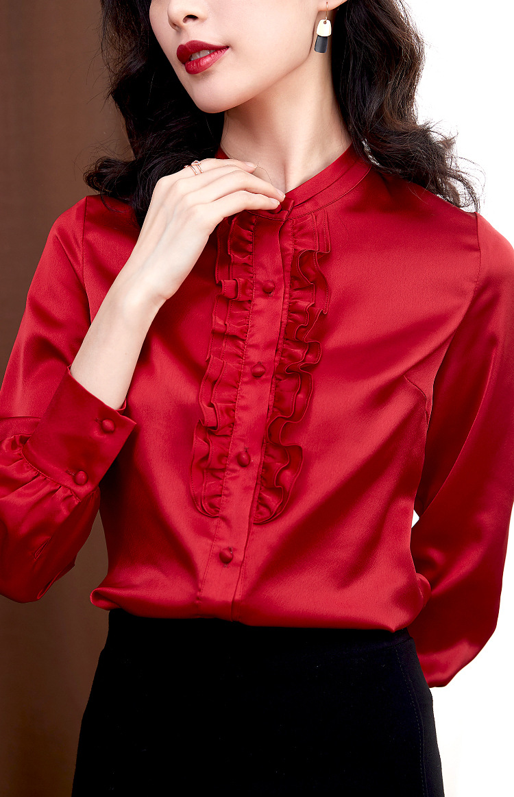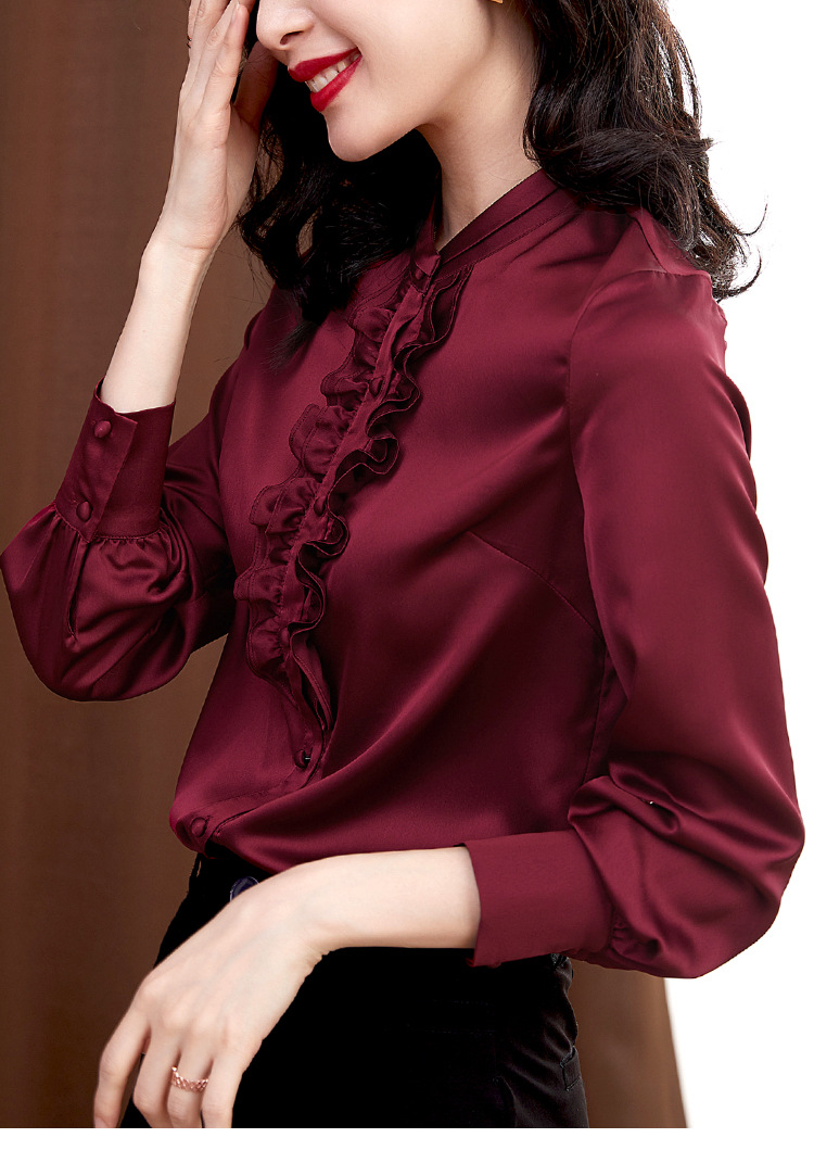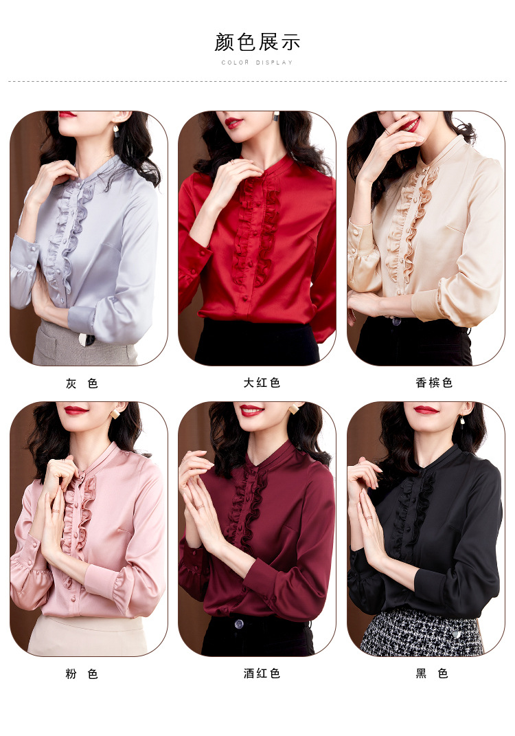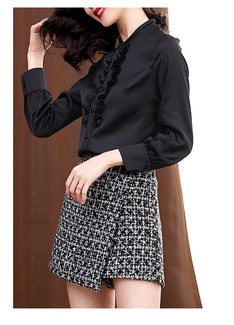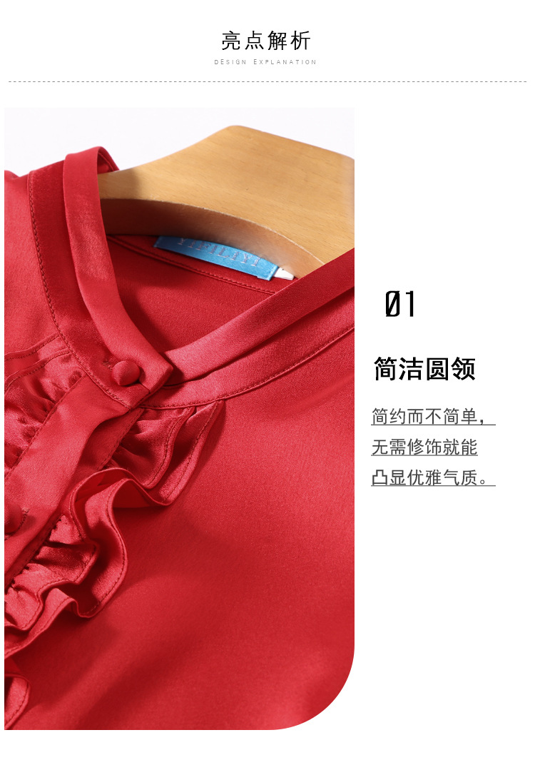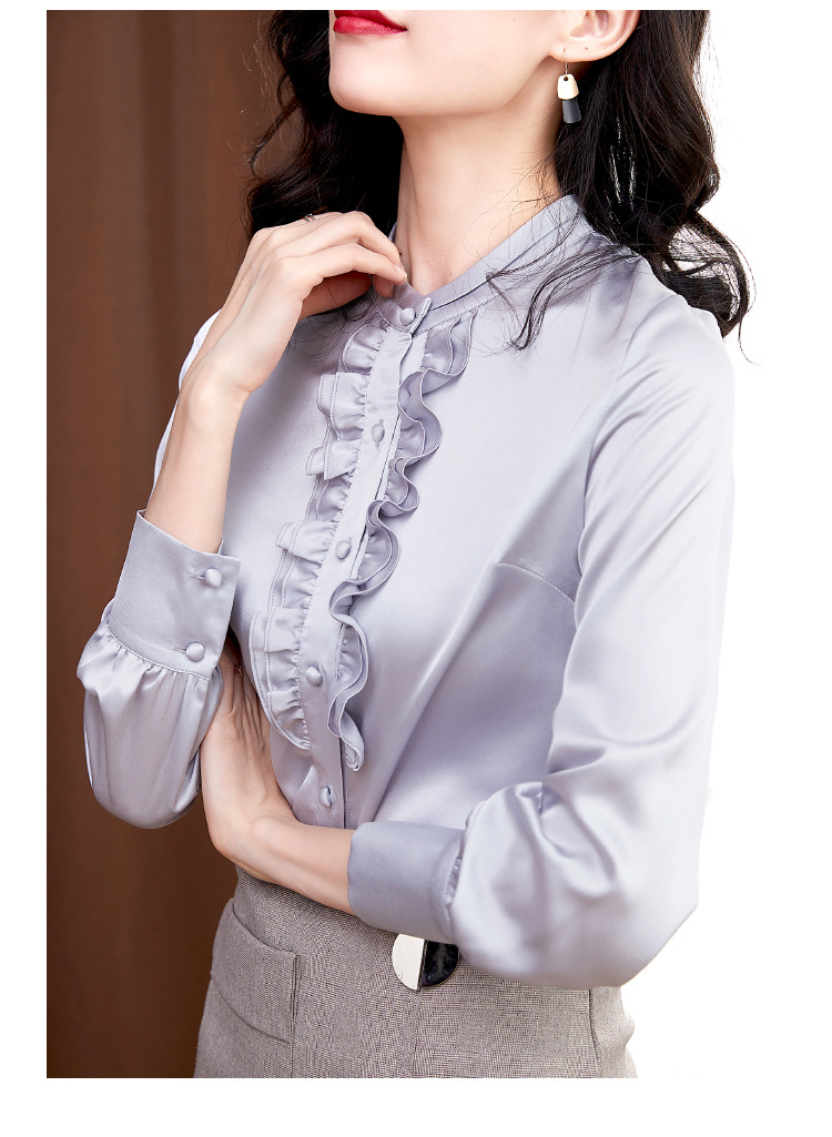 AHM-yfnd9922纯色荷叶边缎面衬衣