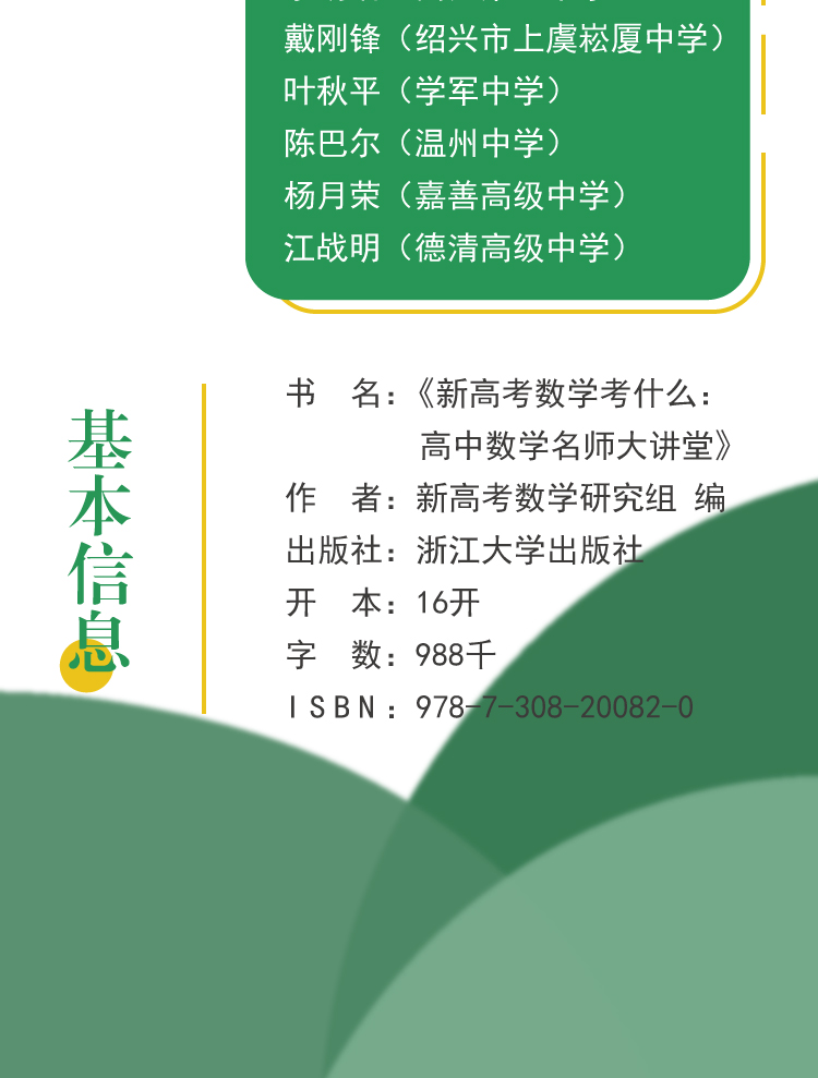 书名:新高考数学考什么:高中数学名师大讲堂 ISBN:9787308200820 作者:沈新权 内容提要: