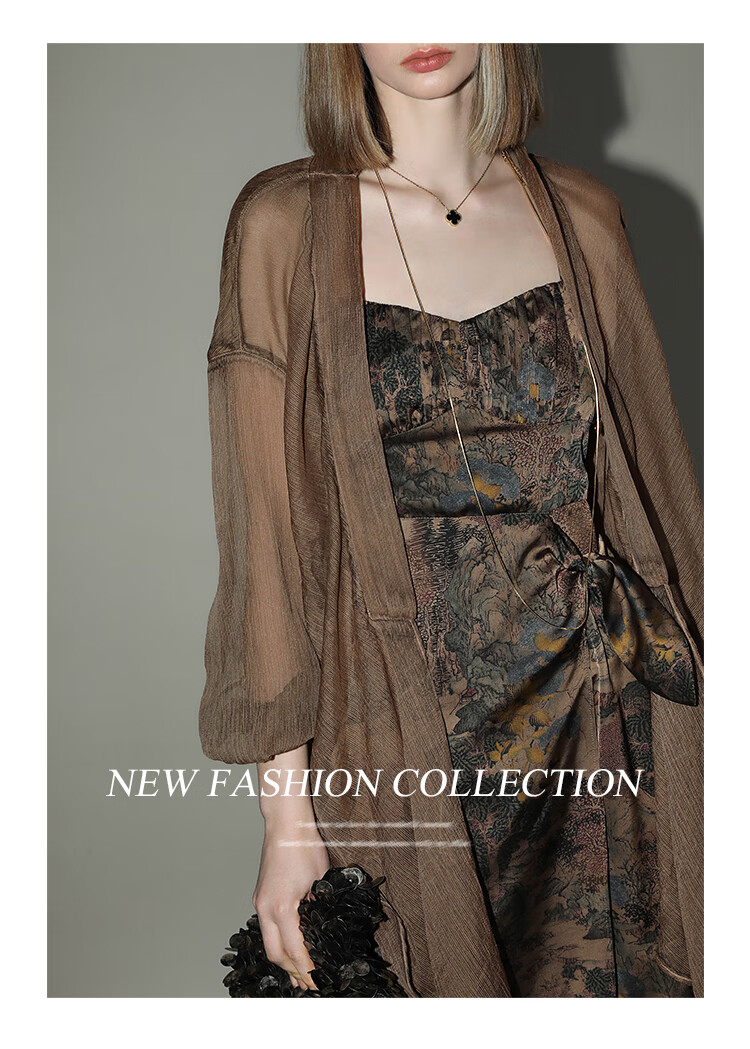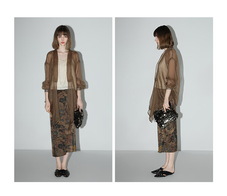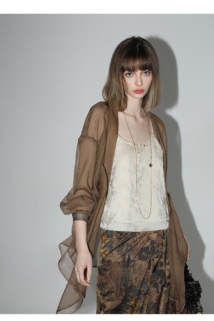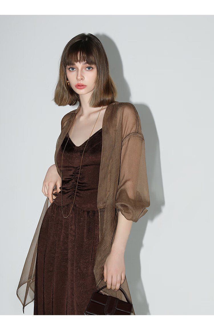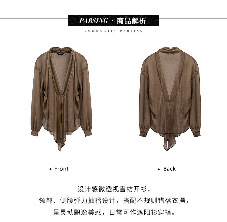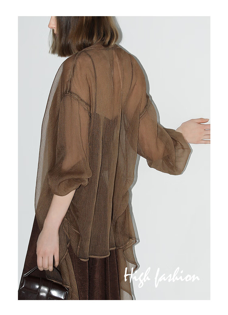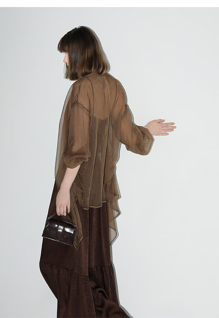 【有赞】LC0001COCOBELLA设计感捏褶肌理感雪纺衫不对称下摆飘逸开衫
