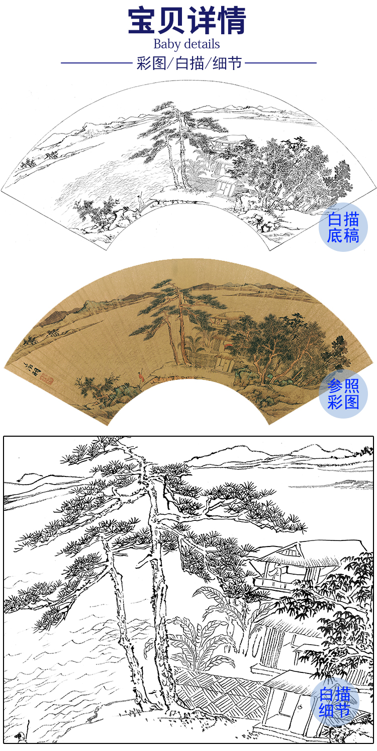 工笔画白描底稿 山水扇面小品 明 文徵明 SR29