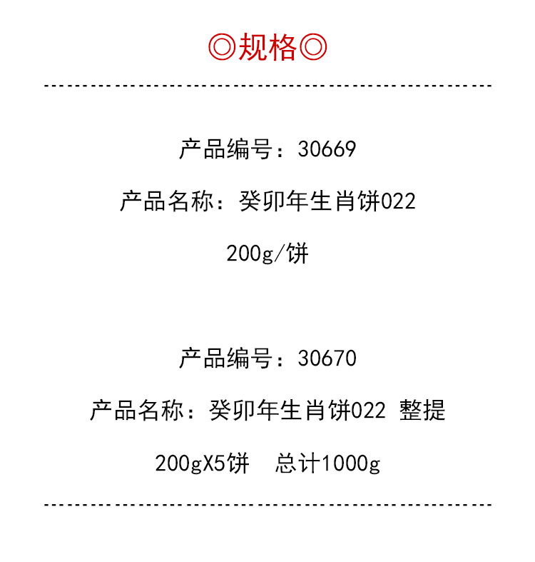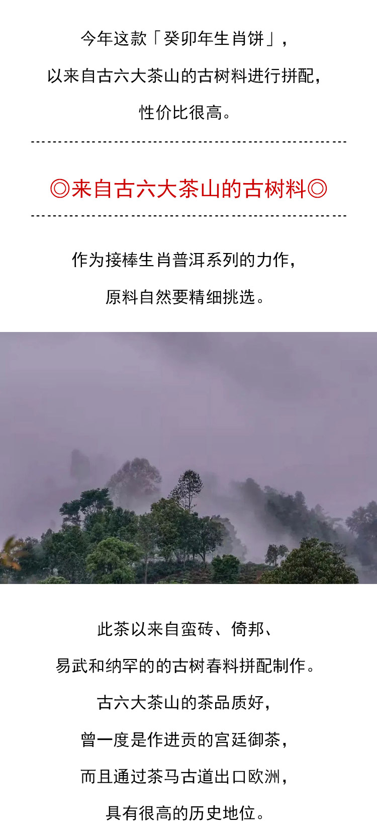 茶香记 癸卯年生肖饼022 生普 定制款 古六大茶山 古树春料 鲜醇清甜