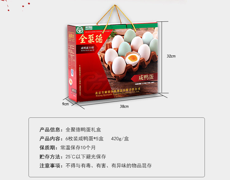 【160周年股东专享】【全聚德鸭蛋礼盒】含6枚装咸鸭蛋*5盒