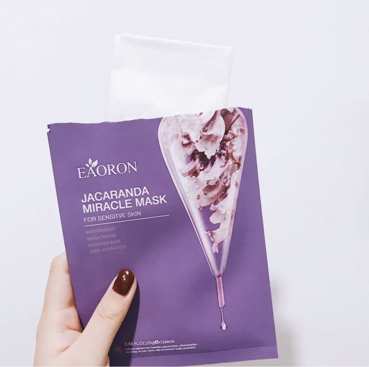 EAORON蓝花楹面膜5片| 👍长时间面对电脑🖥、加班熬夜🌚?请用它!蓝花楹奇迹面膜主打舒缓修复💜,拥有纯净的修护能量,对敏感肌很友好,能抵御肌肤被外界损害,舒缓安抚,保湿莹润,让肌肤细腻嫩滑,呈现清新肤色。🏙城市里、空调房和奔波于人群的你,睡前一片,还你弹润亮白水光脸。非常适合肌肤出油严重、难上妆、毛孔粗大的人群,尤其是敏感肌。