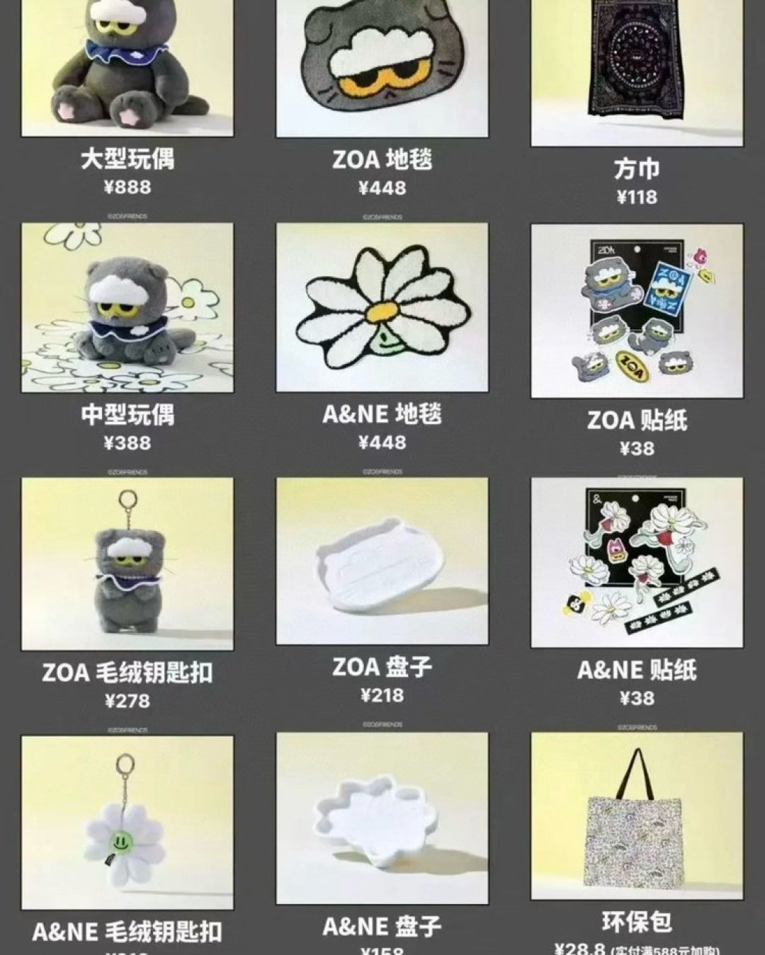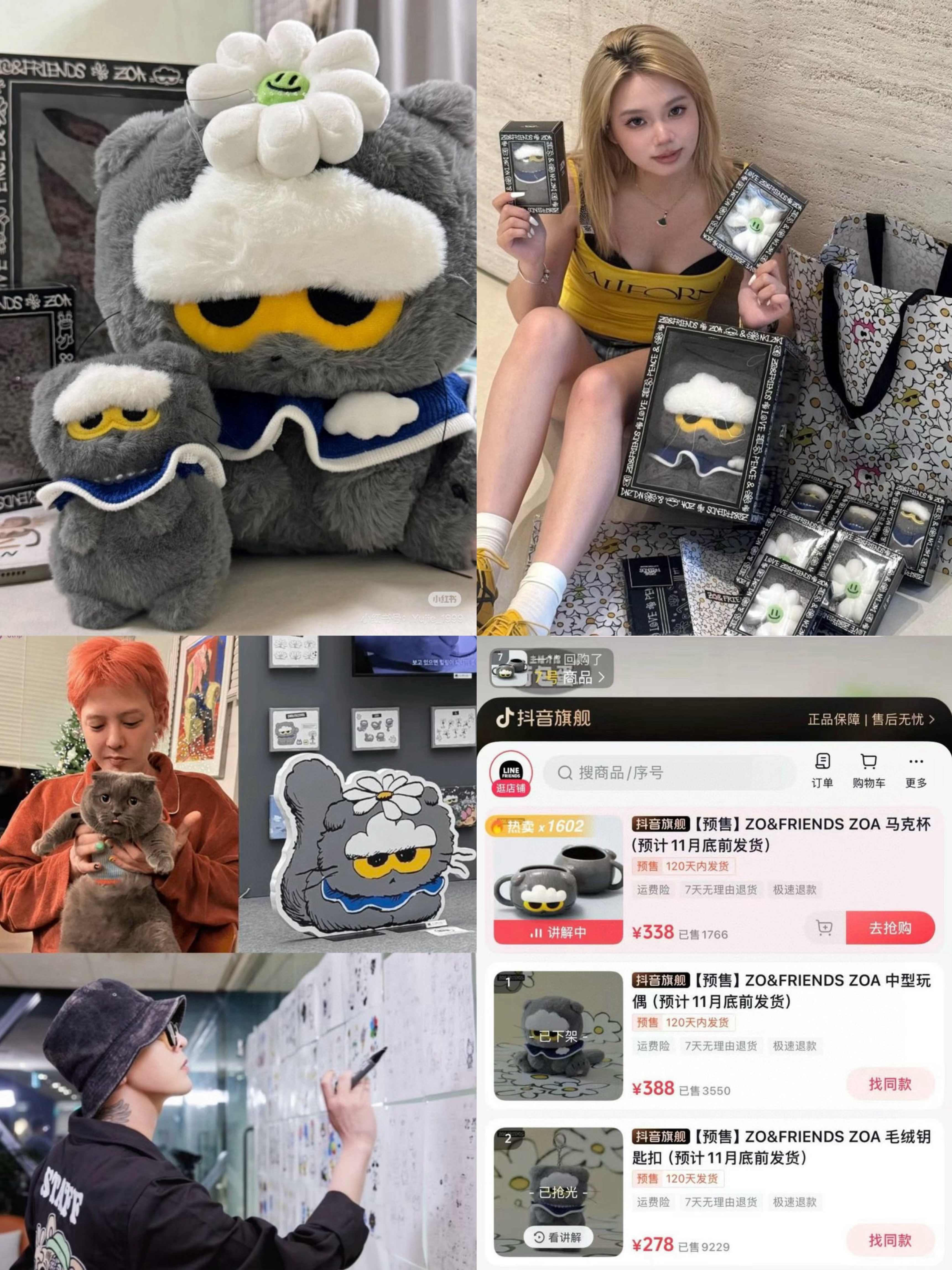 来!⚠️权志龙设计的zoa !!!! 谁不知道啊!这只超火的小猫咪zoa!!一个中号的玩偶还有一个挂件⚠️两个是分开售卖的哈!这个可是潮流之神 GD下场做的IP!!绝对的大爆款好吗!!!是联手LINE FRIENDS 打造治愈系品牌「ZO&FRIENDS」!!!你们就说牛不牛!!! 这个权志龙联名ZO&FRIENDS 真的是势不可挡!! 所有潮玩在它面前都会逊色!!已上架直接一下子被抢空了!! 你们再等就没有了!!这个玩意真的很上头啊啊啊!! 毕竟谁不喜欢跟龙哥一起云养猫? 快来和权志龙同款 ZOA 贴贴!果然美女都很爱!!抢破头了!!⚠️渠道货 官网级别的包装!!就是一样一样的知道吧!!打开之后就可以看到可爱ZO&FRIENDS!!不怕对比因为拿到手你就知道多好!!娃娃身上的这个小衣服 都是可以脱下来的。小挂件身上还有珍珠项链呢!! 中号玩偶的小衣服上面有小云朵呢~ 跟jellycat一样!!娃娃的底部是有颗粒填充物的!!要知道填充物是决定其手感、安全性。耐用性和价格的核心因素之一!! 这种娃娃的定价都是很高的!!