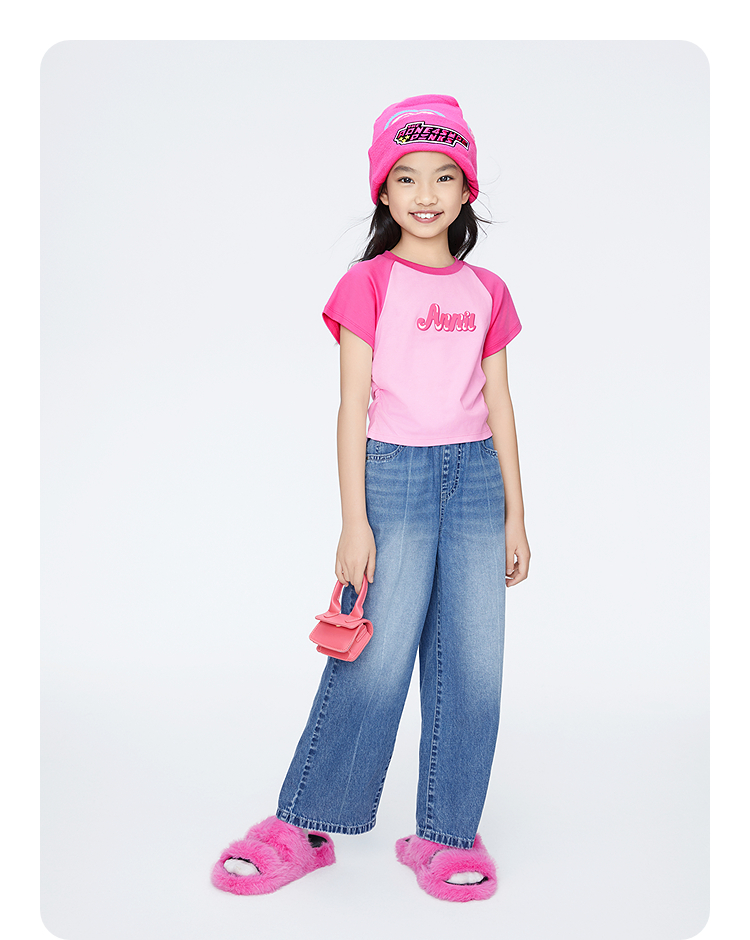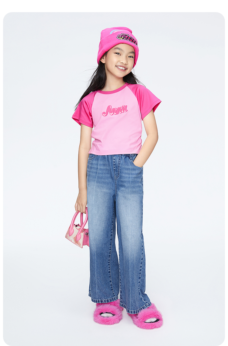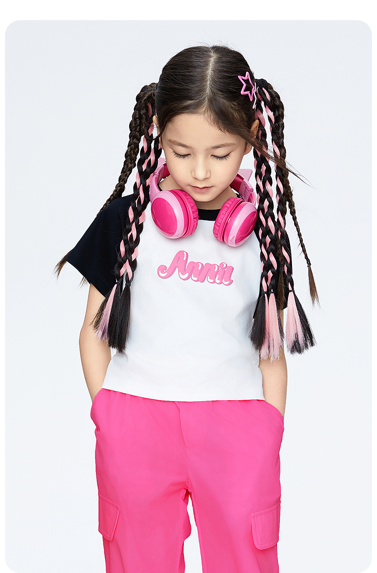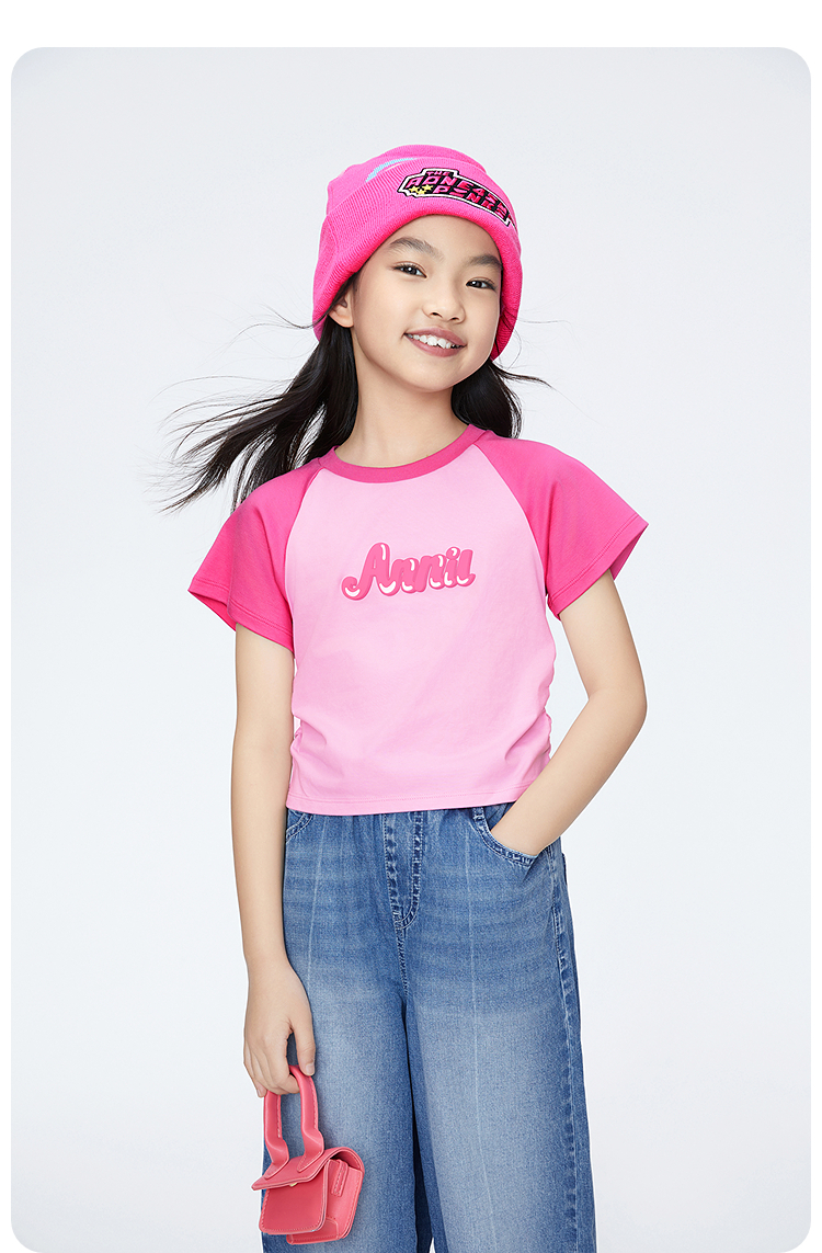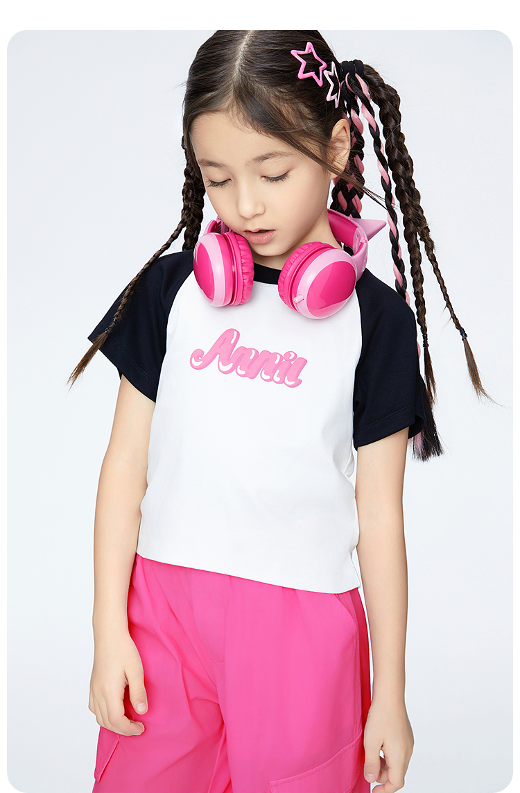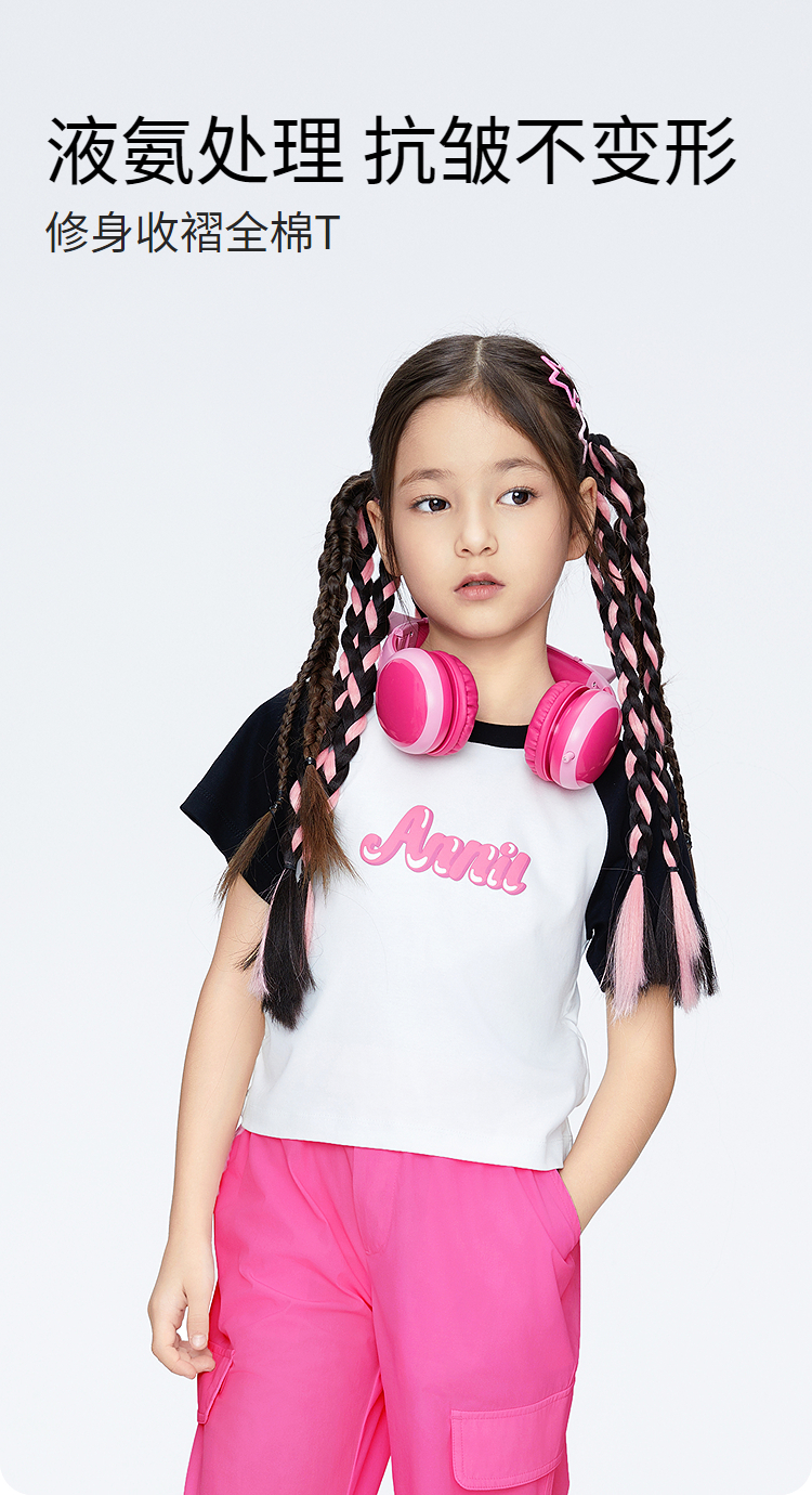 女童圆领液氨短袖针织衫夏季新款安奈儿童装EG521159
