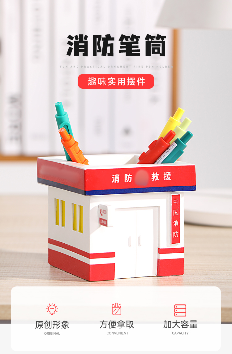 【消防笔筒】趣味笔筒创意摆件办公用品收纳盒置物个性笔架