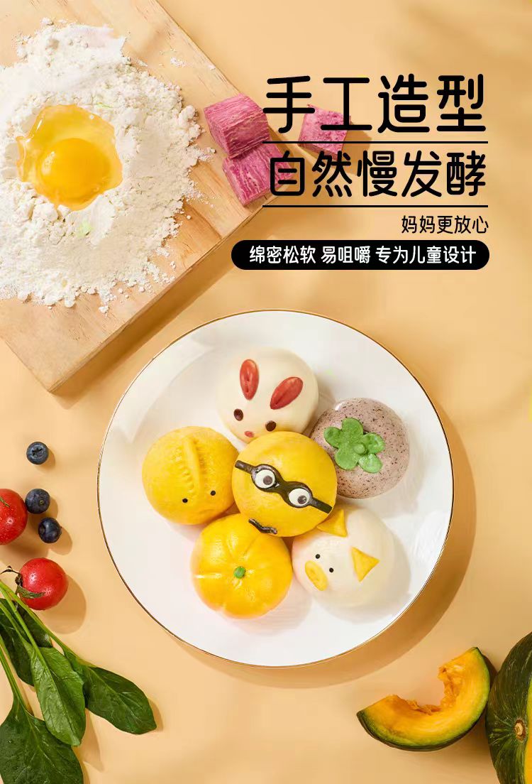 【代餐良品】花木子黄油果蔬卡通早餐包 果蔬粉上色 自然慢发酵 免密松软 易咀嚼口感柔软蓬松 造型可爱 孩子超爱吃~
