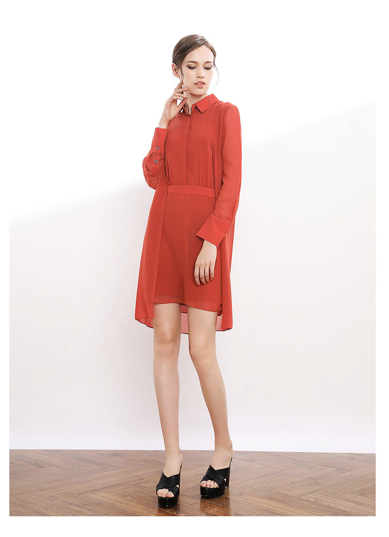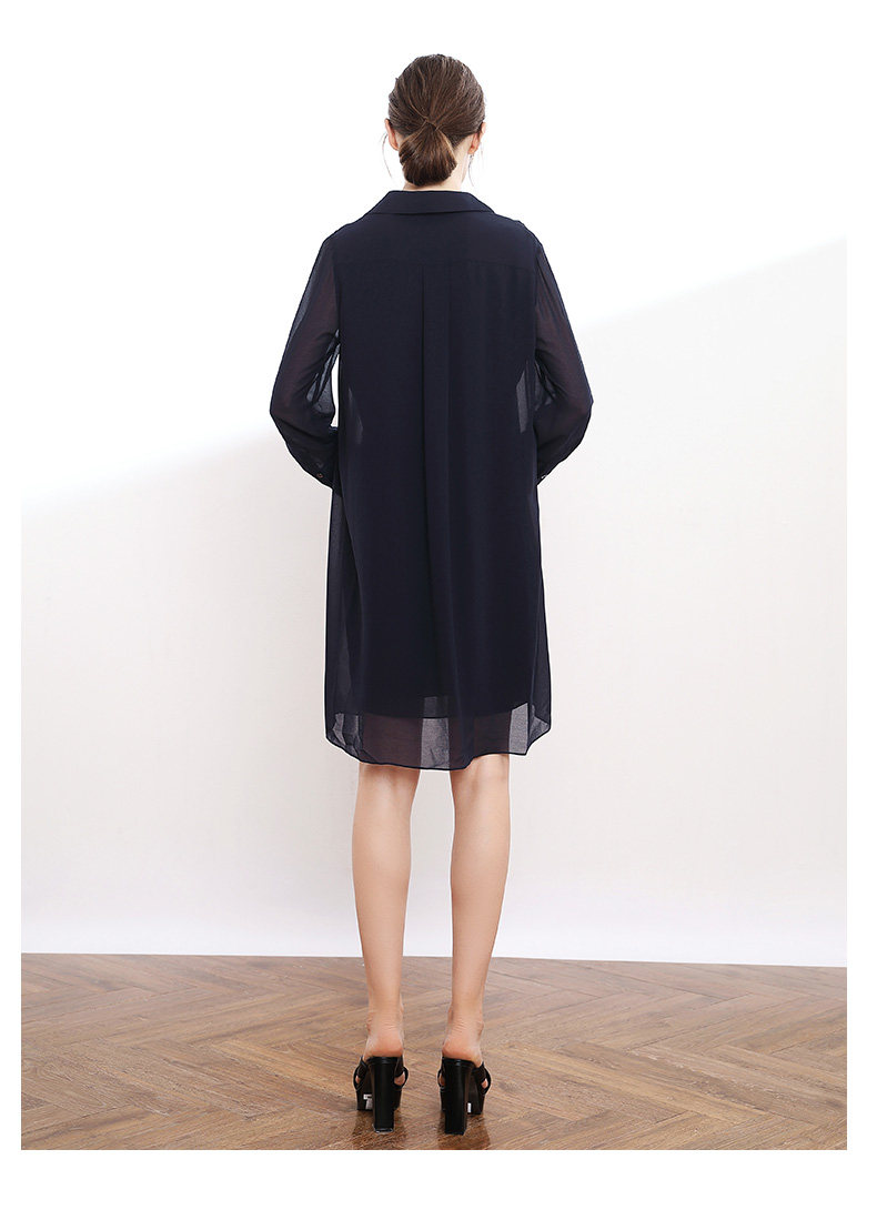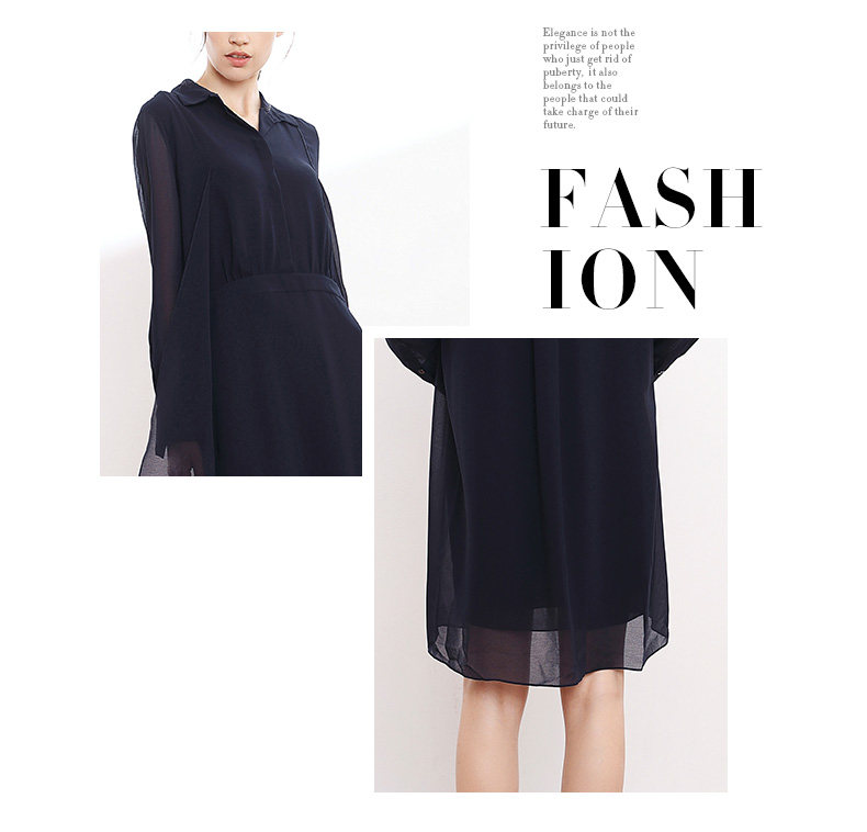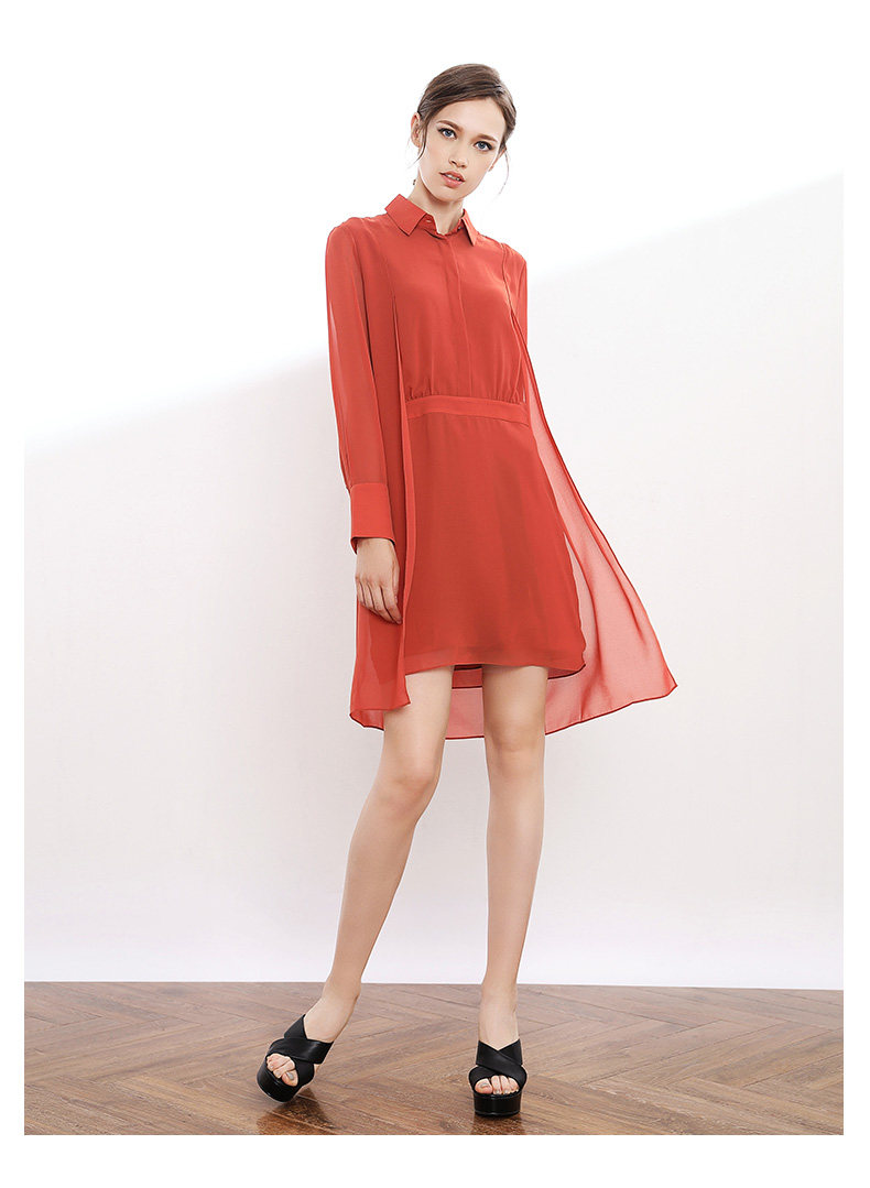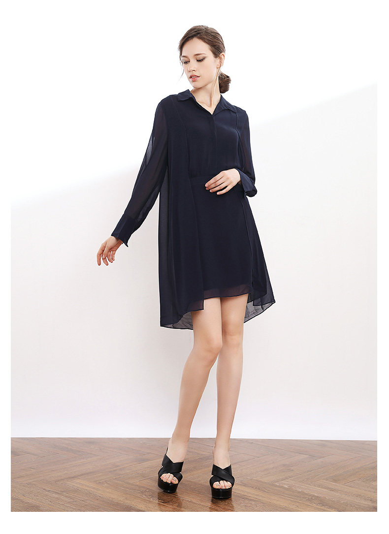 VIMAGE纬漫纪秋季女装衬衫领长袖拼接披肩雪纺连衣裙中裙V9075103