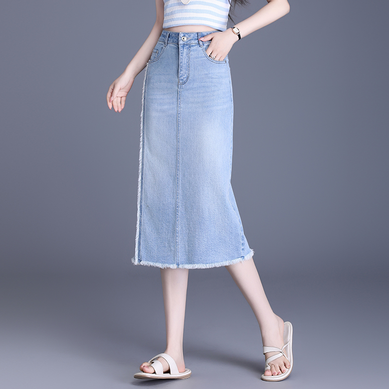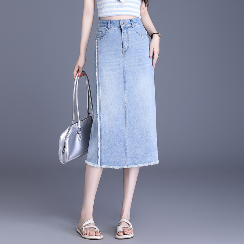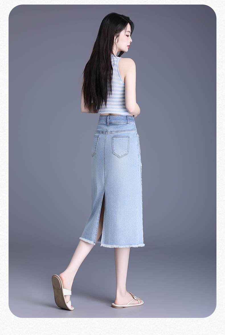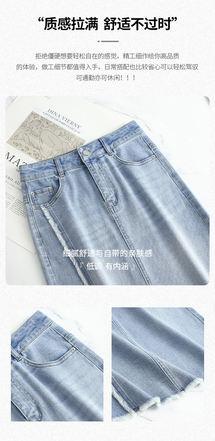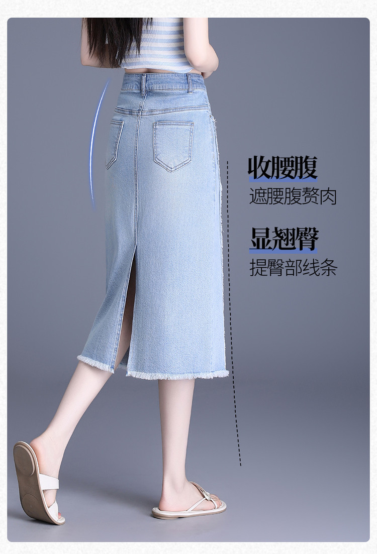【预售3天】PY-2025新款女韩版高腰中长款包臀裙简约牛仔直筒开叉半身裙SES&BF9817