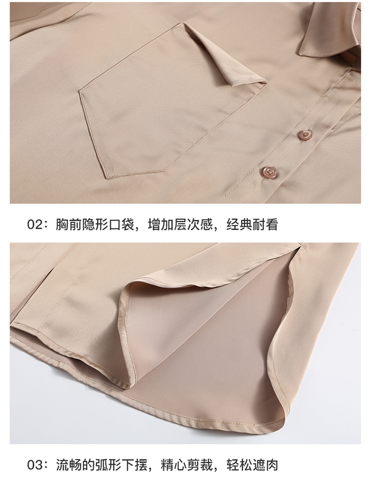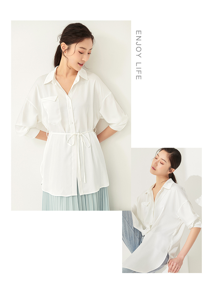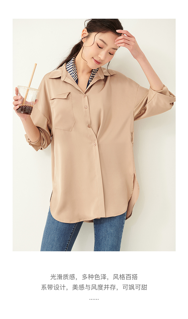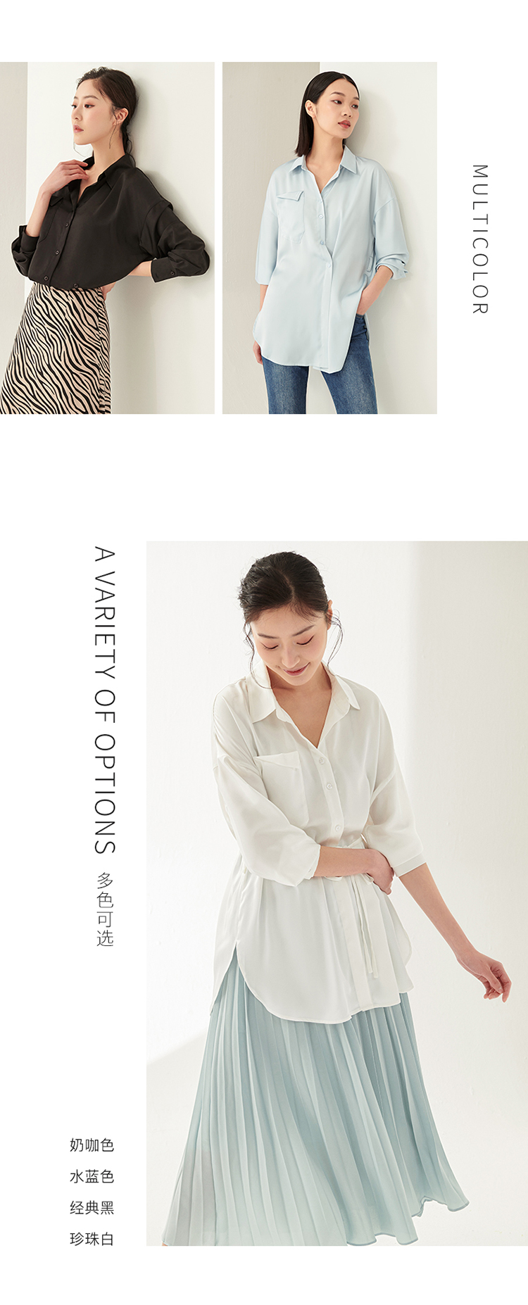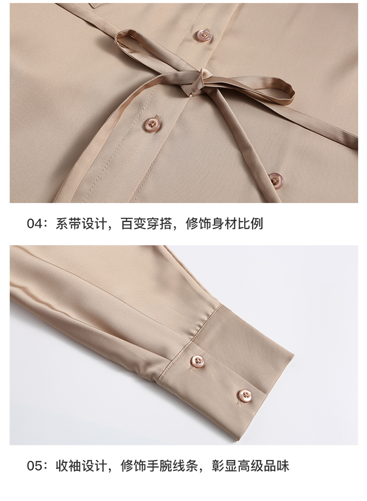 inandon女装春夏新款丝质系带两穿衬衫女收腰显瘦落肩中长上衣21226